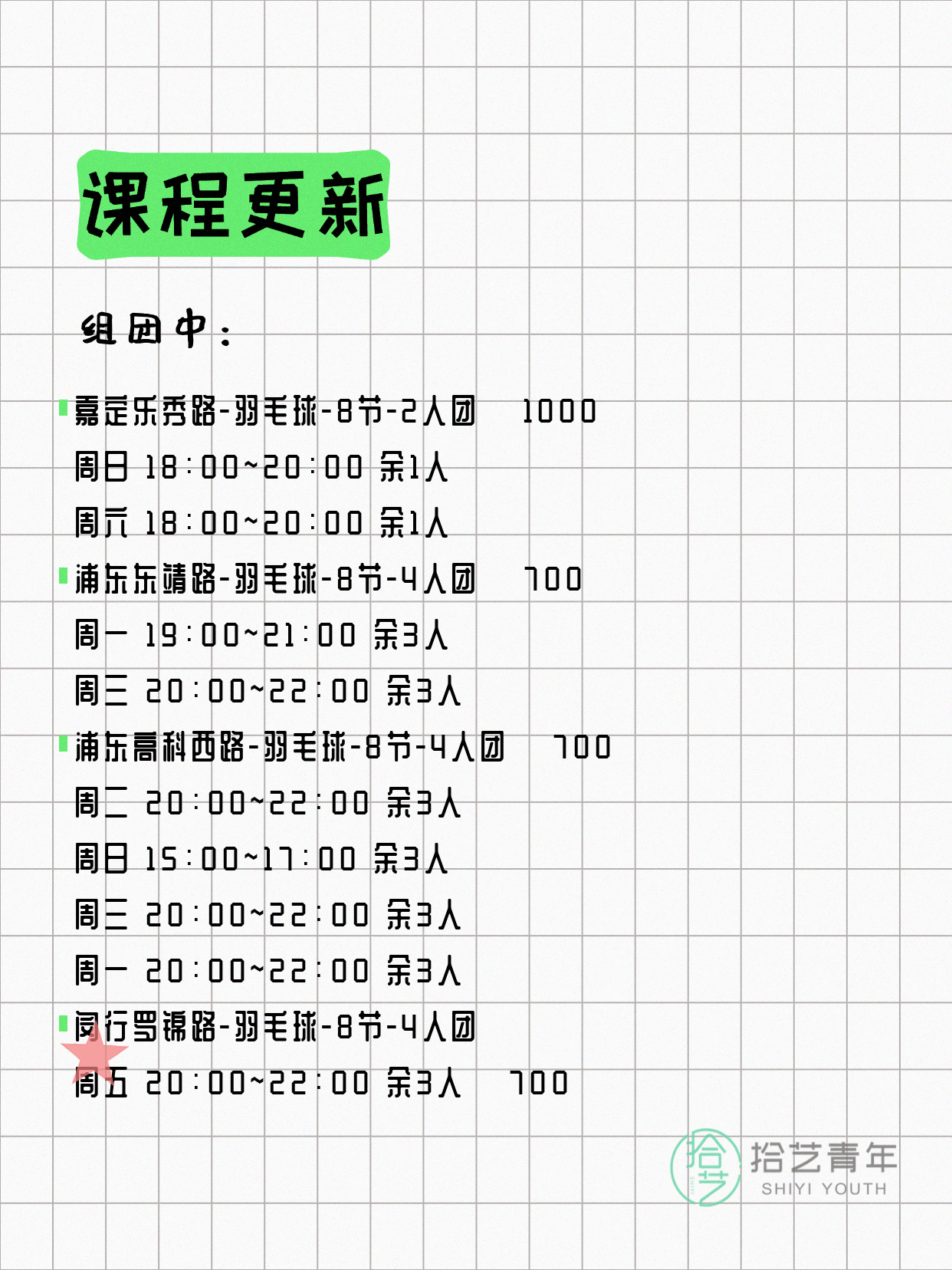 🔥 羽毛球-浦东高科西路-8节-4人团 💰700