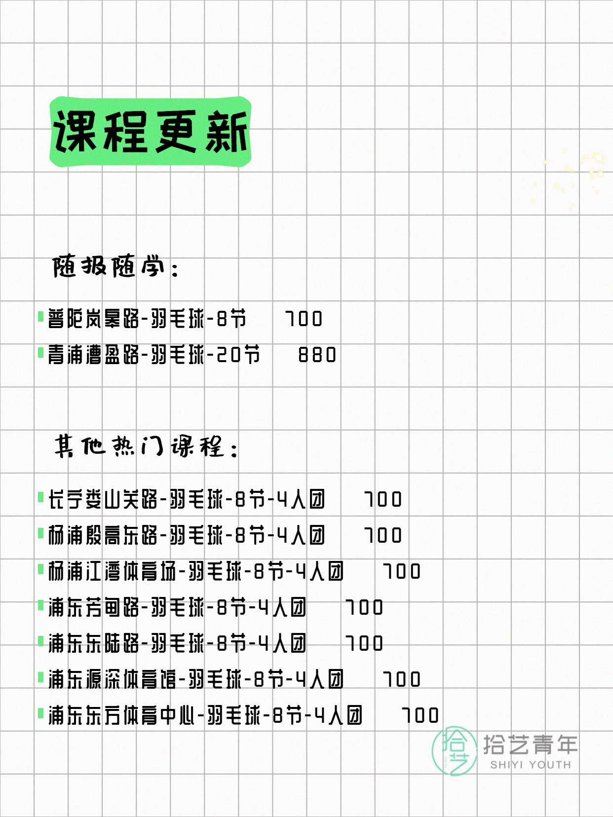 📌 羽毛球-青浦漕盈路-20节-一人即可 💰880