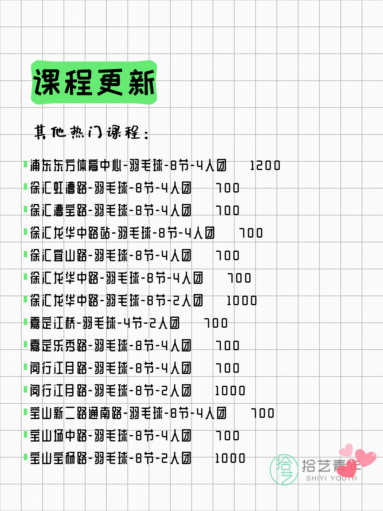 ⭐ 羽毛球-徐汇虹漕路-8节-4人团 💰700