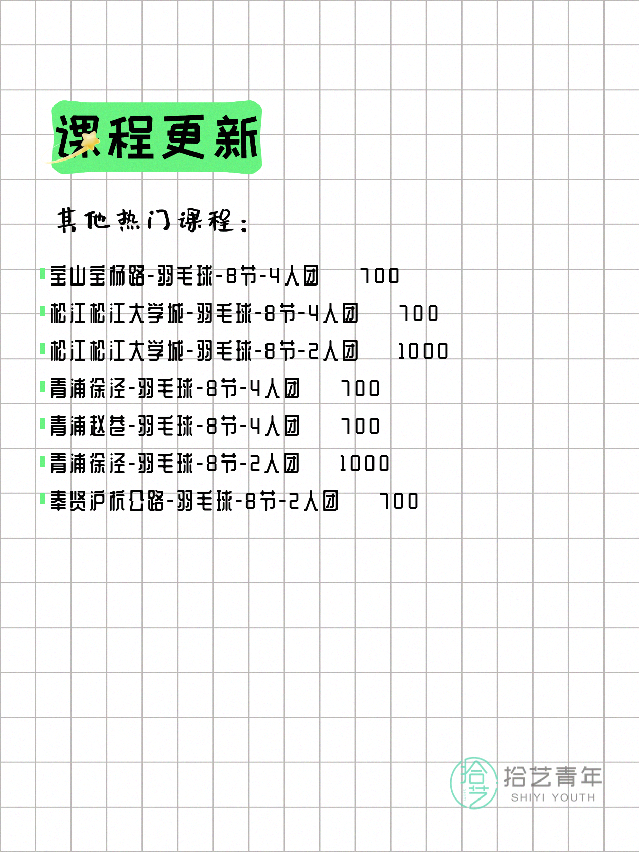 ⭐ 羽毛球-松江松江大学城-8节-4人团 💰700