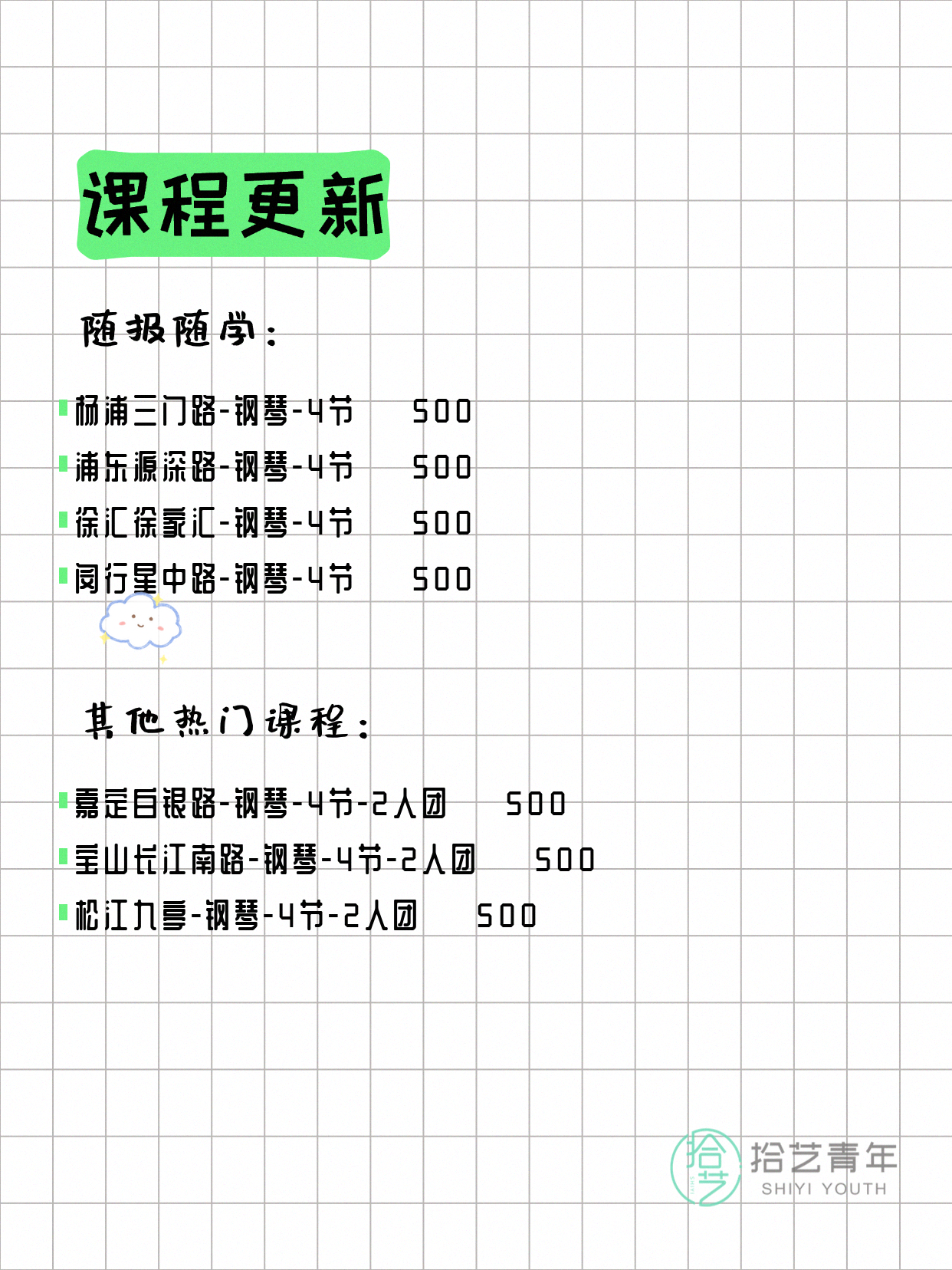 ⭐ 钢琴-松江九亭-4节-2人团 💰500
