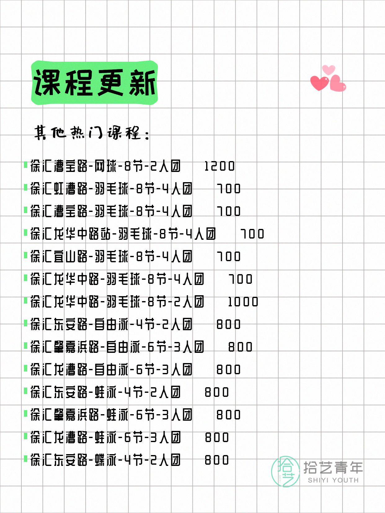 ⭐ 仰泳-徐汇东安路-4节-2人团 💰800