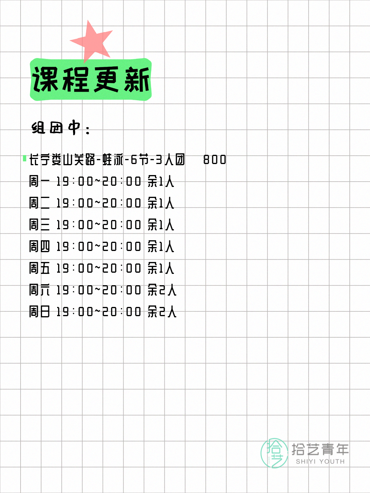 ⭐ 仰泳-长宁淞虹路-6节-3人团 💰800