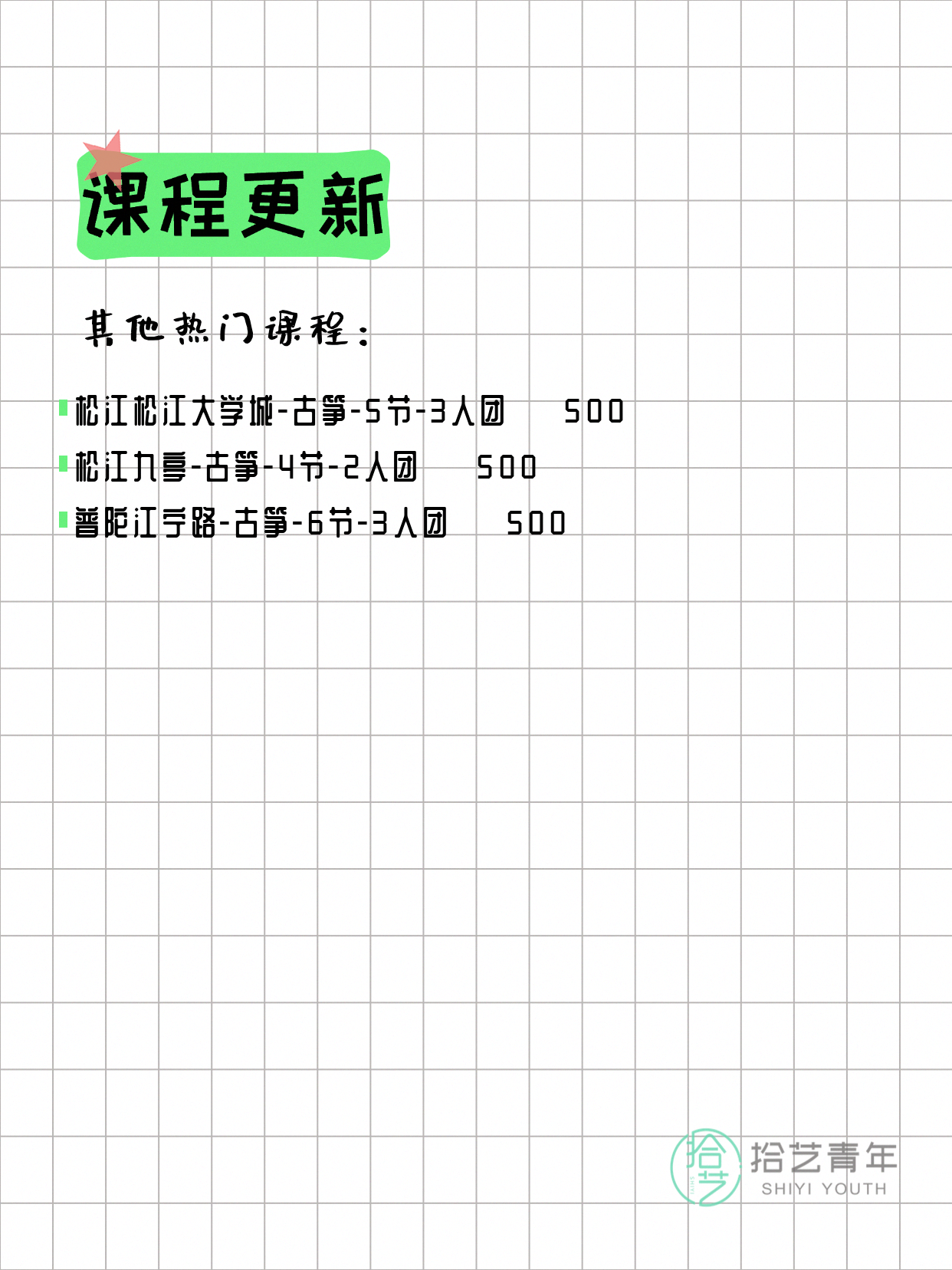⭐ 古筝-松江松江大学城-5节-3人团 💰500