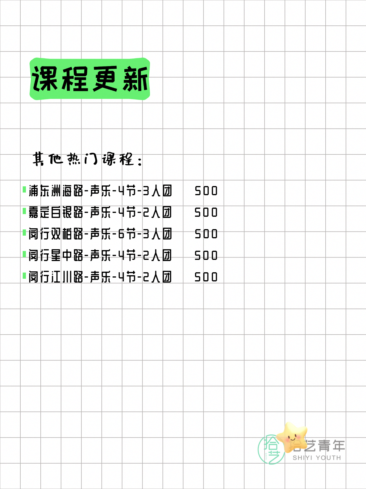 ⭐ 声乐-浦东洲海路-4节-3人团 💰500