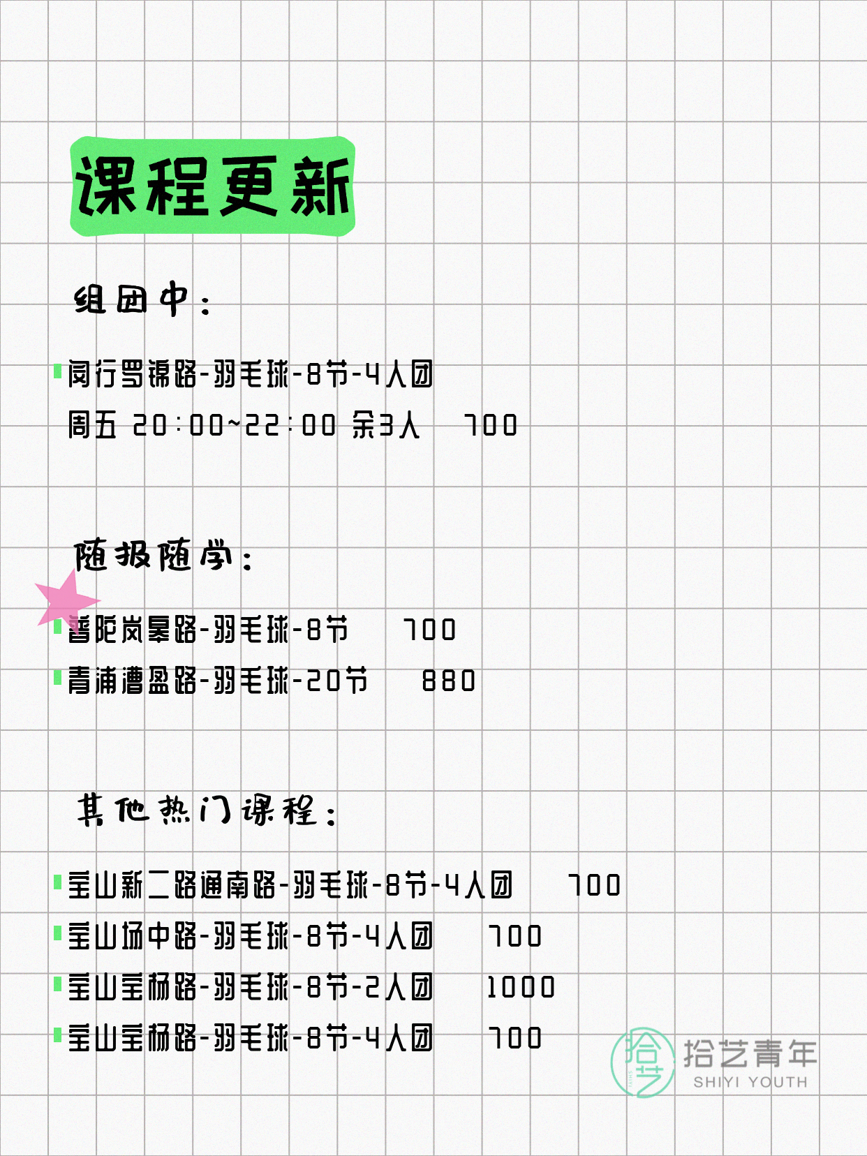 📌 羽毛球-青浦漕盈路-20节-一人即可 💰880