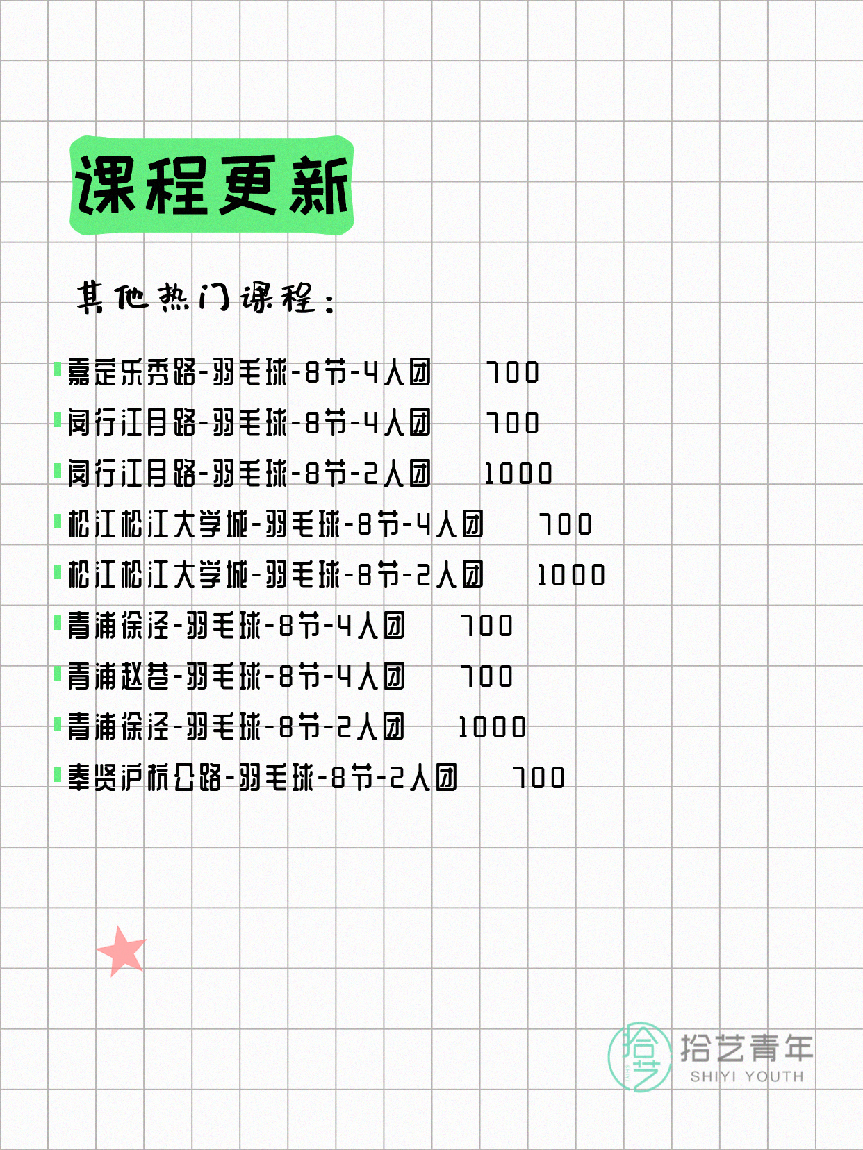 ⭐ 羽毛球-青浦徐泾-8节-4人团 💰700