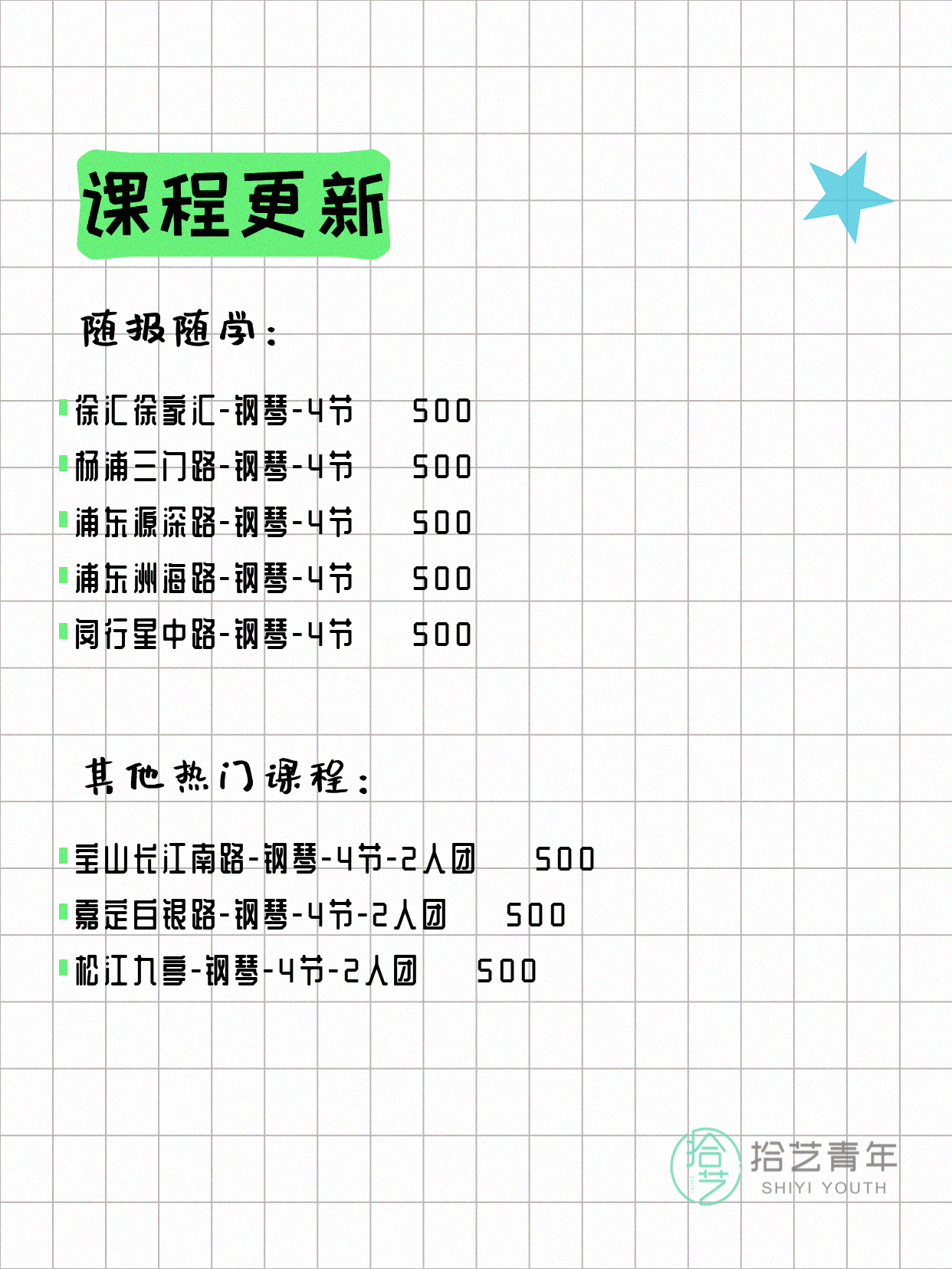 ⭐ 钢琴-松江九亭-4节-2人团 💰500