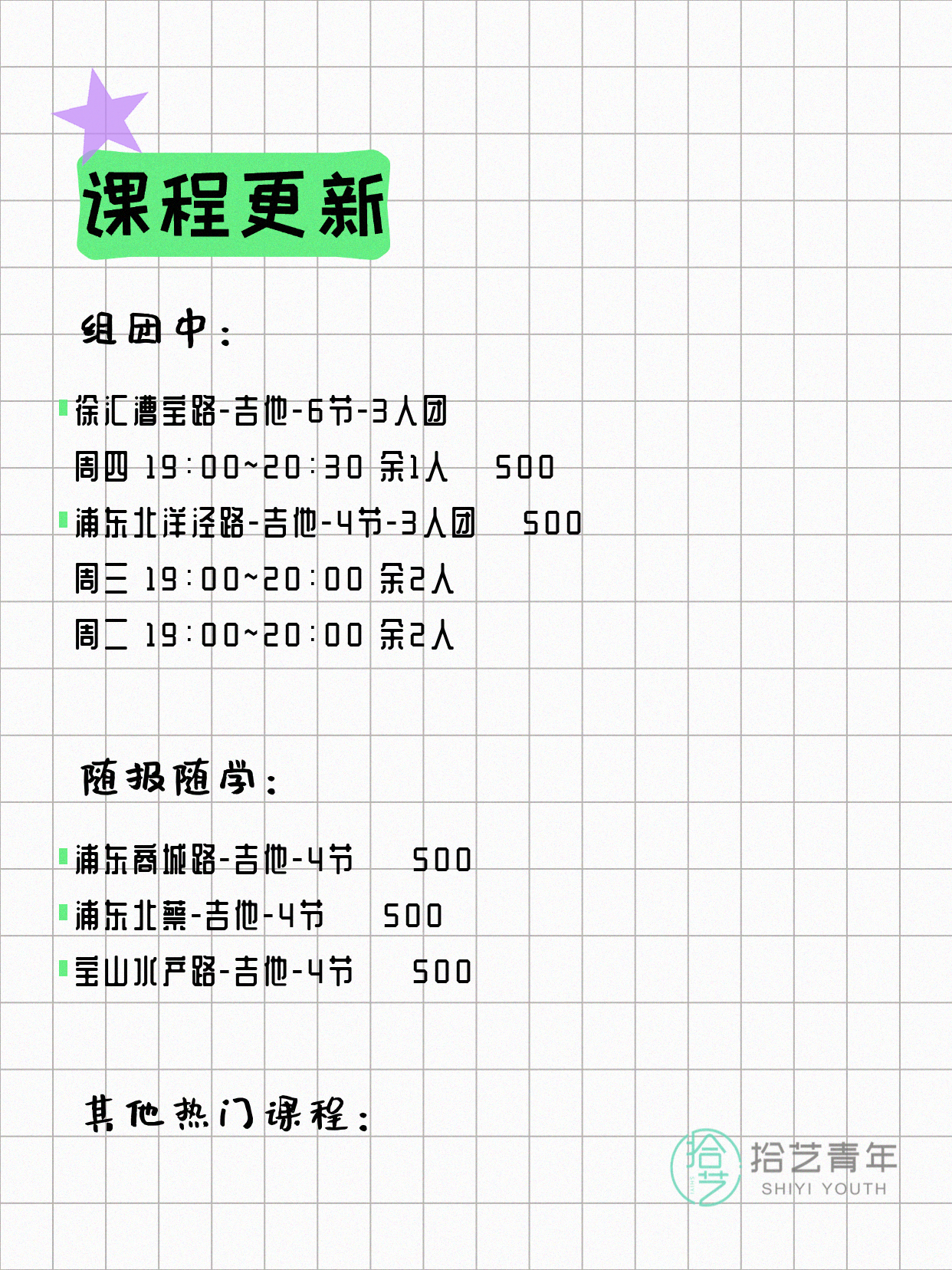🔥 吉他-浦东北洋泾路-4节-3人团 💰500