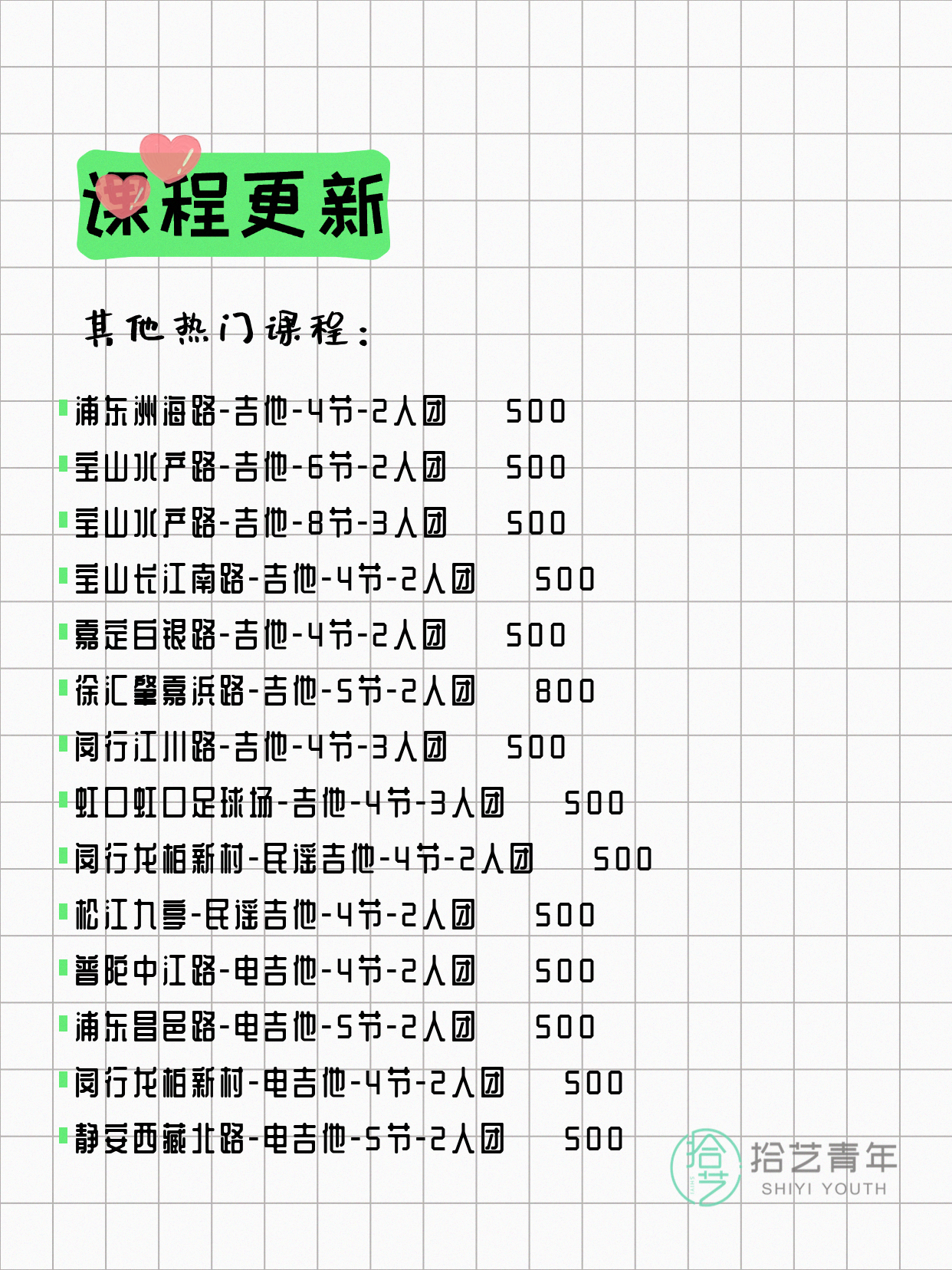 ⭐ 吉他-宝山水产路-6节-2人团 💰500