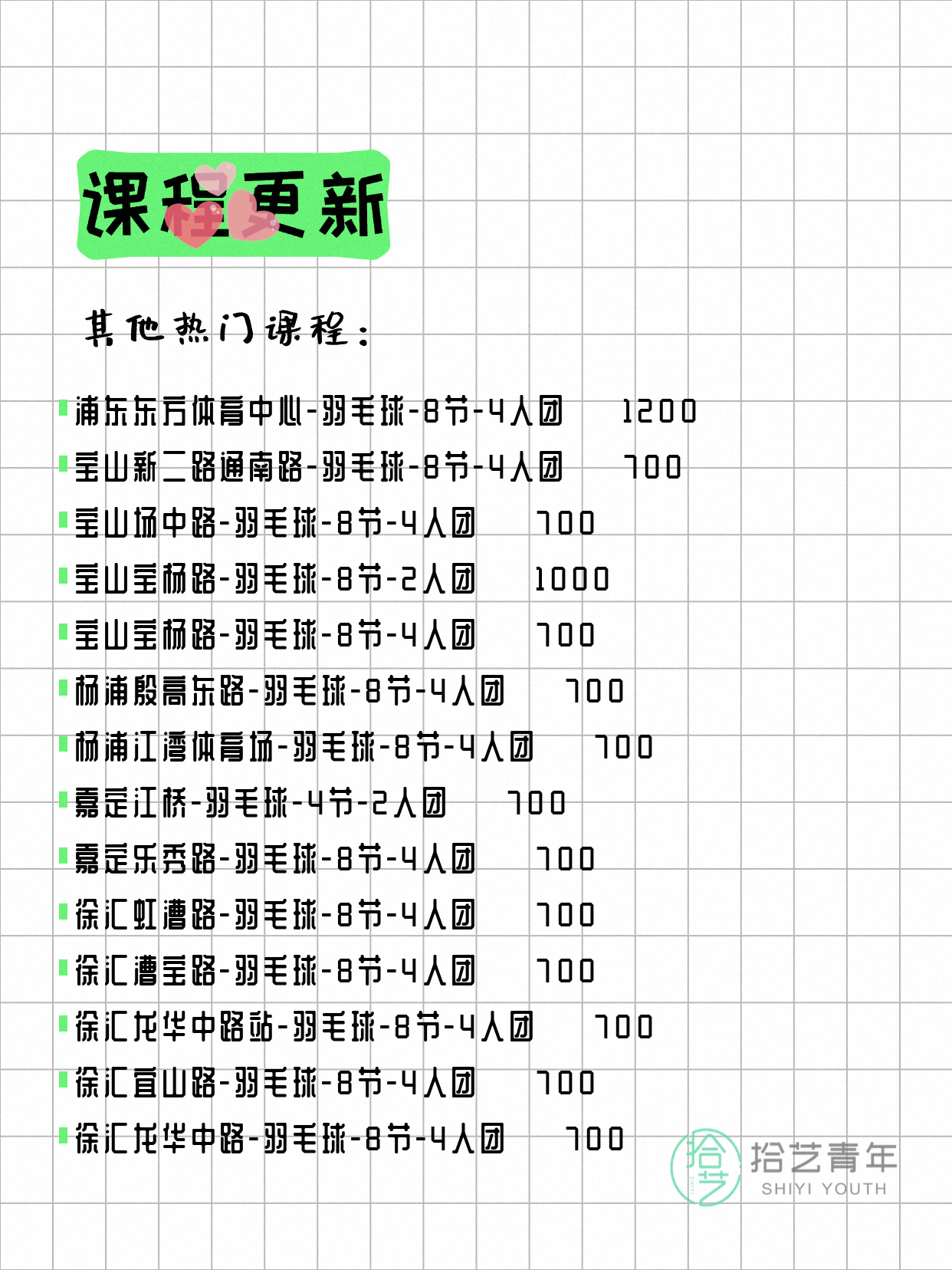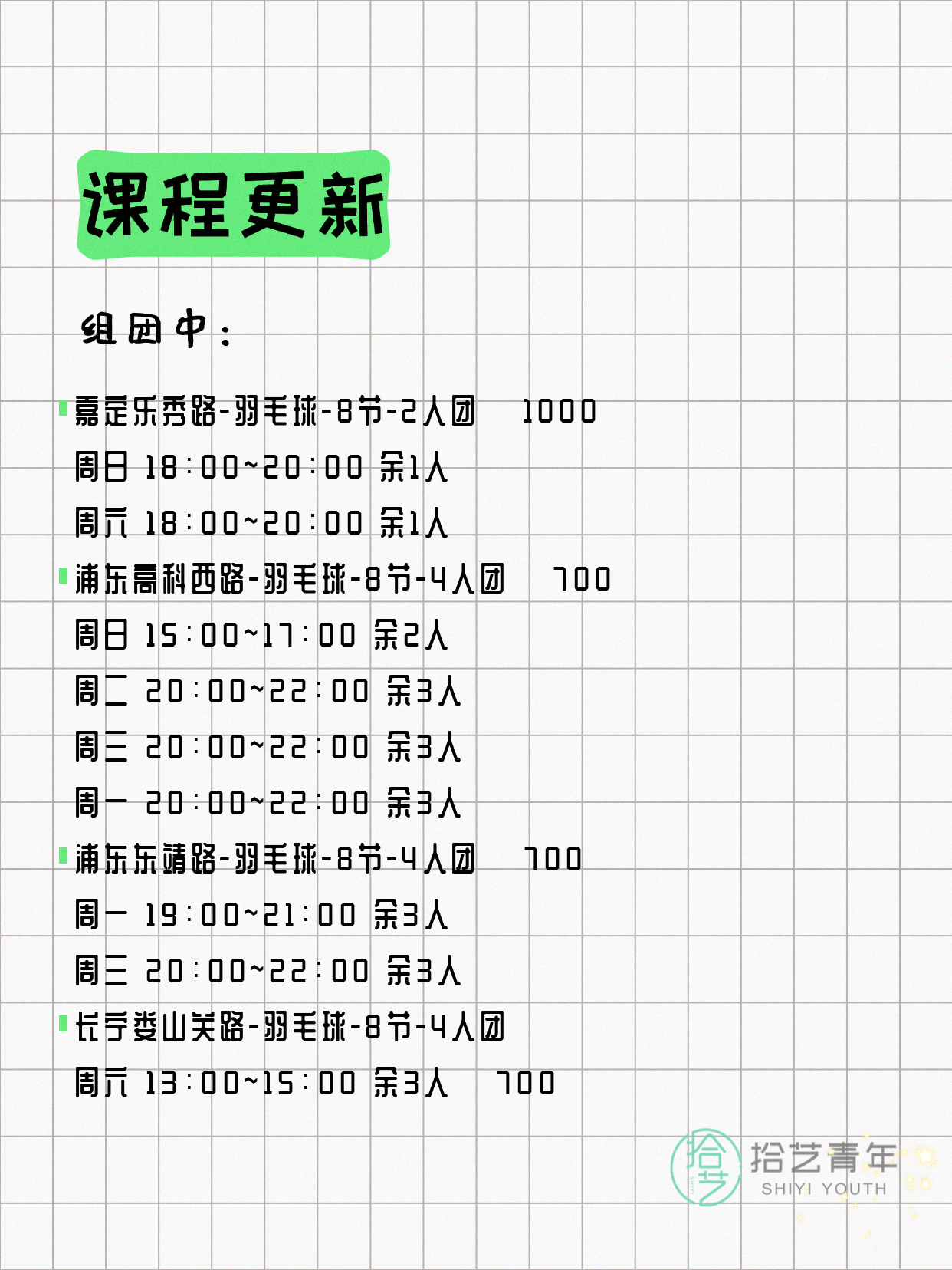 🔥 羽毛球-浦东高科西路-8节-4人团 💰700