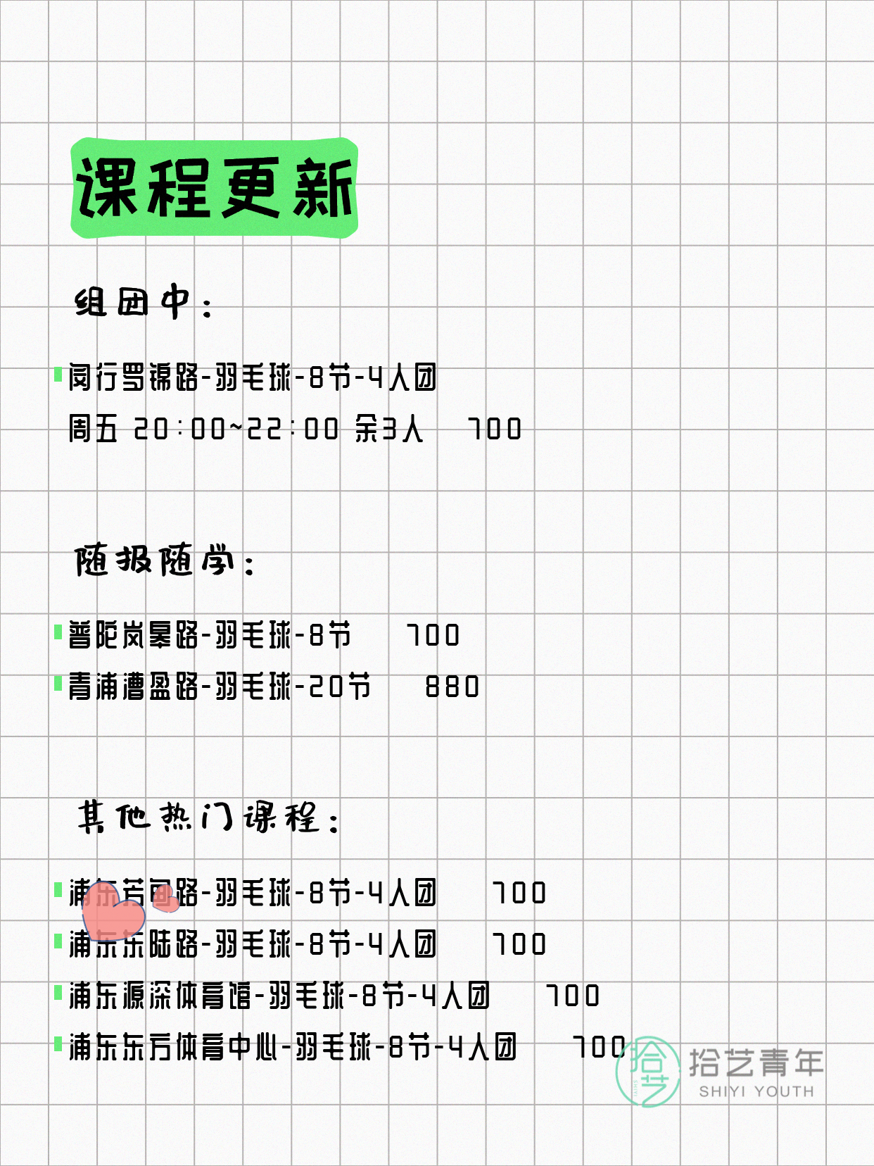 📌 羽毛球-青浦漕盈路-20节-一人即可 💰880