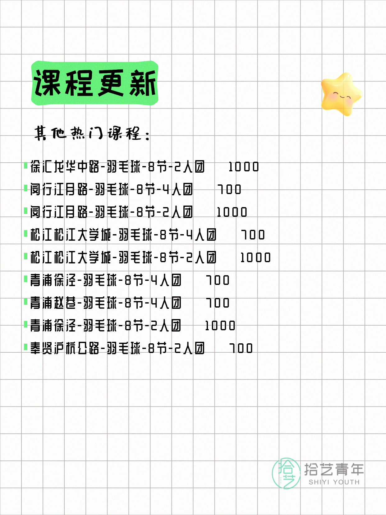 ⭐ 羽毛球-松江松江大学城-8节-2人团 💰1000