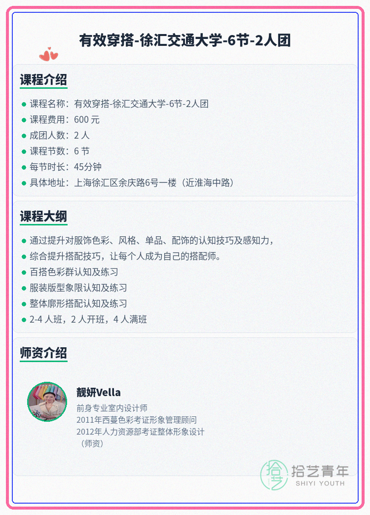 #上海夜校 #徐汇夜校 #有效穿搭课程 #夜校拼团 #上海线下课