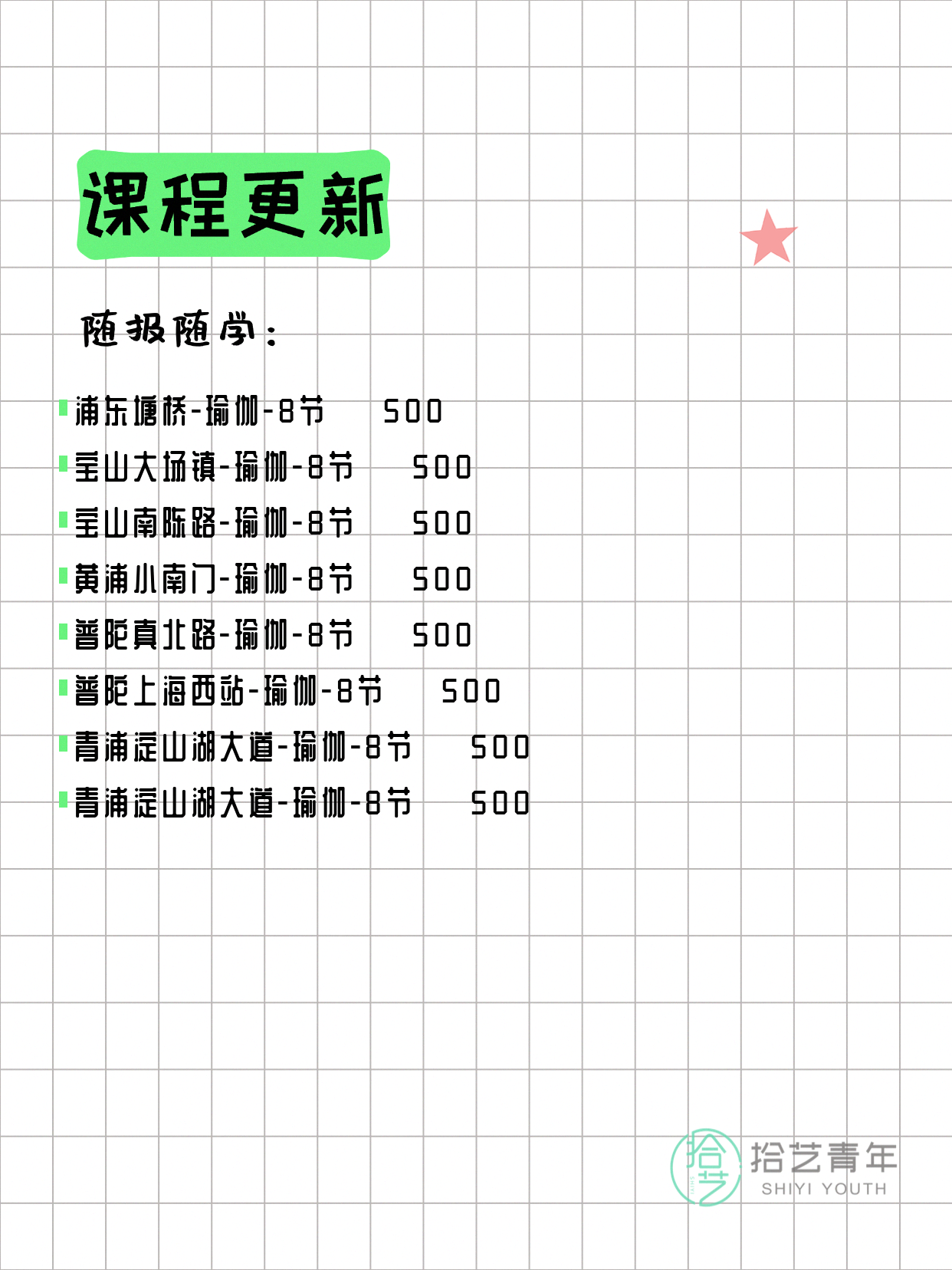 📌 瑜伽-浦东塘桥-8节-一人即可 💰500