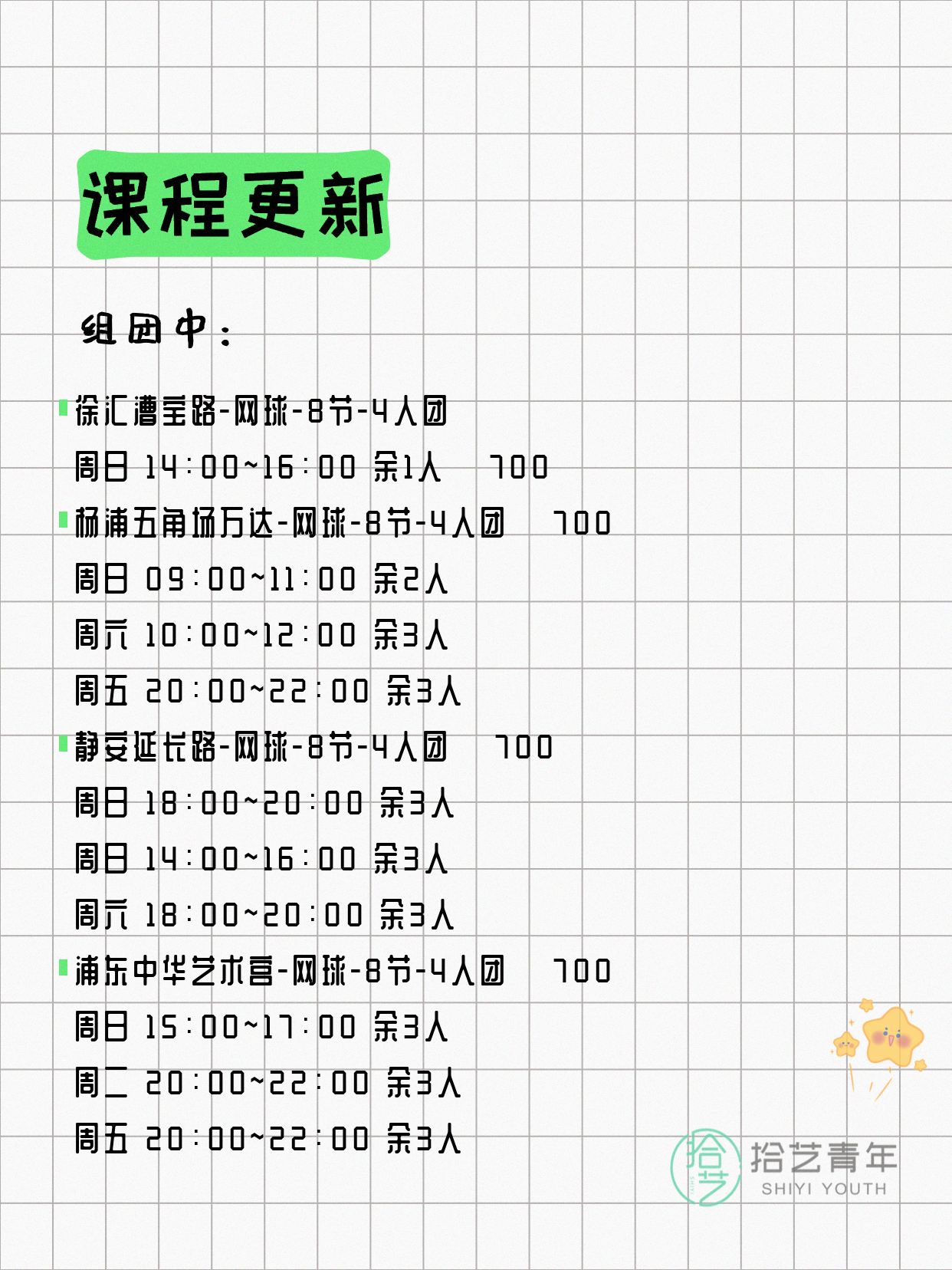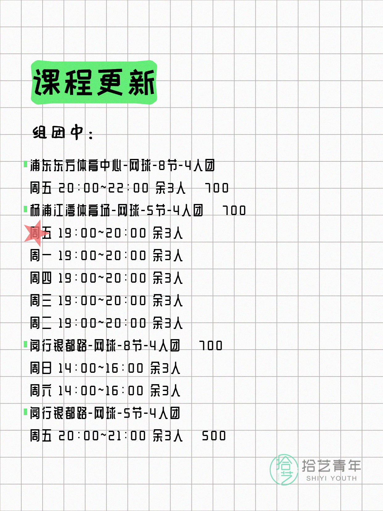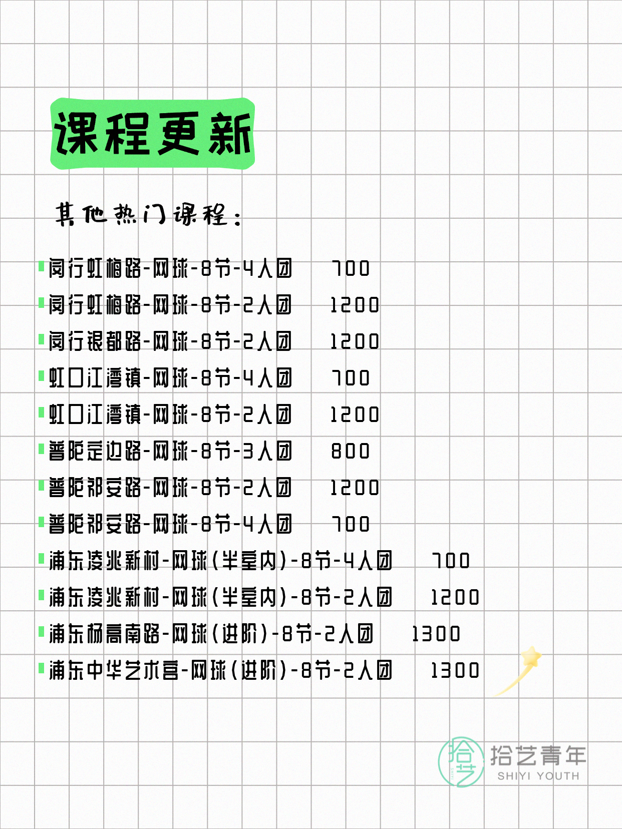⭐ 网球-普陀祁安路-8节-2人团 💰1200