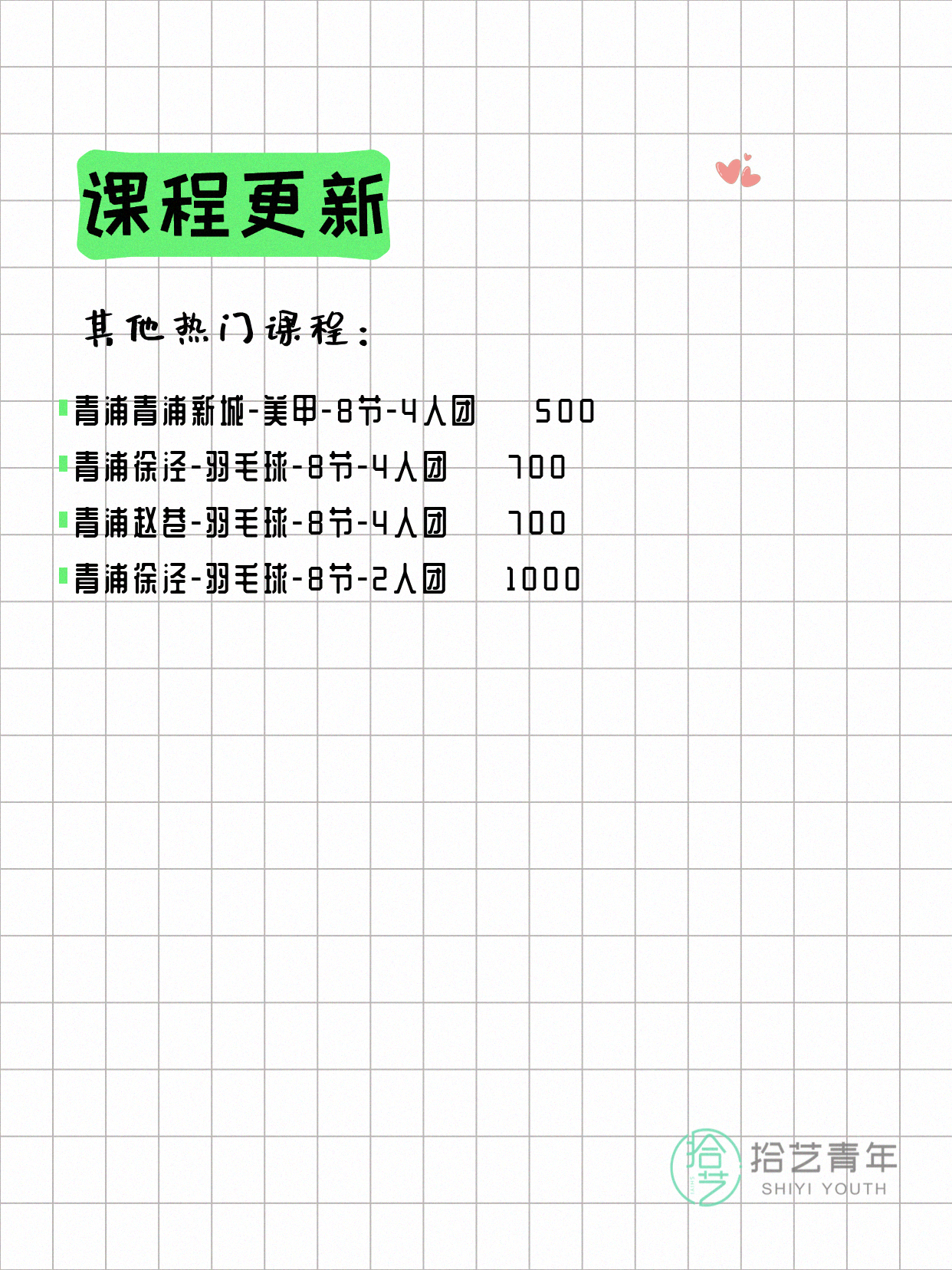⭐ 羽毛球-青浦赵巷-8节-4人团 💰700