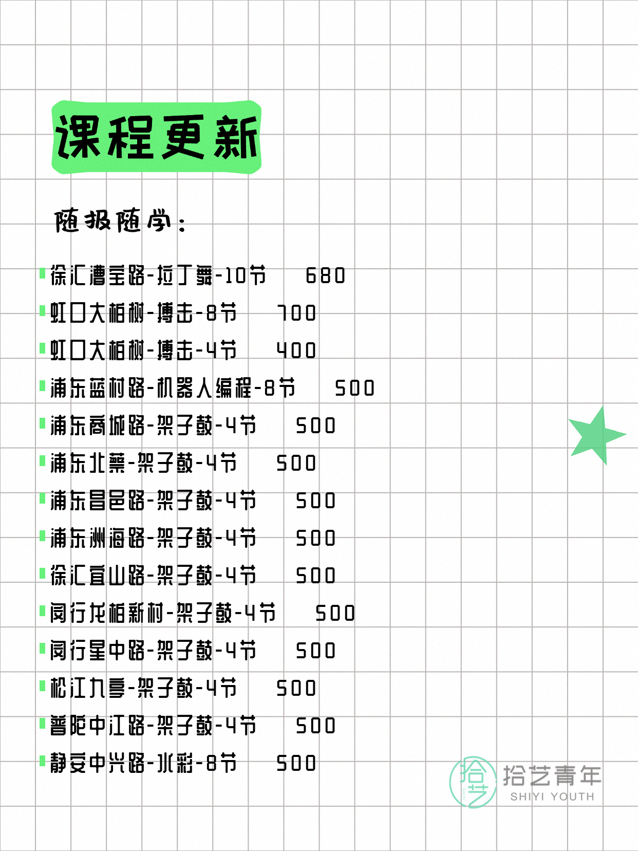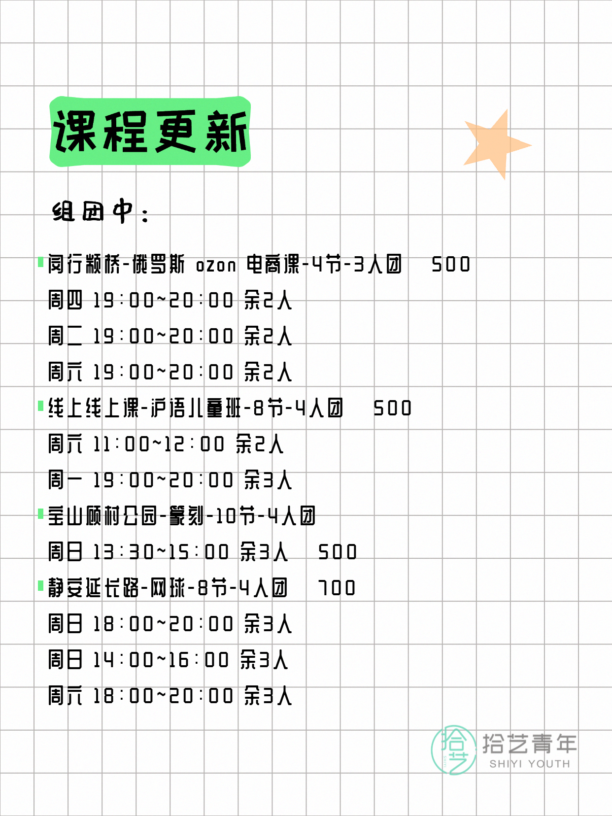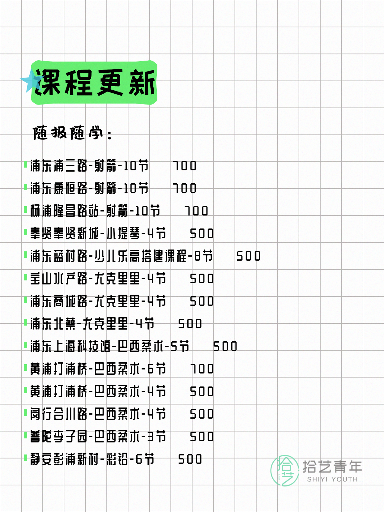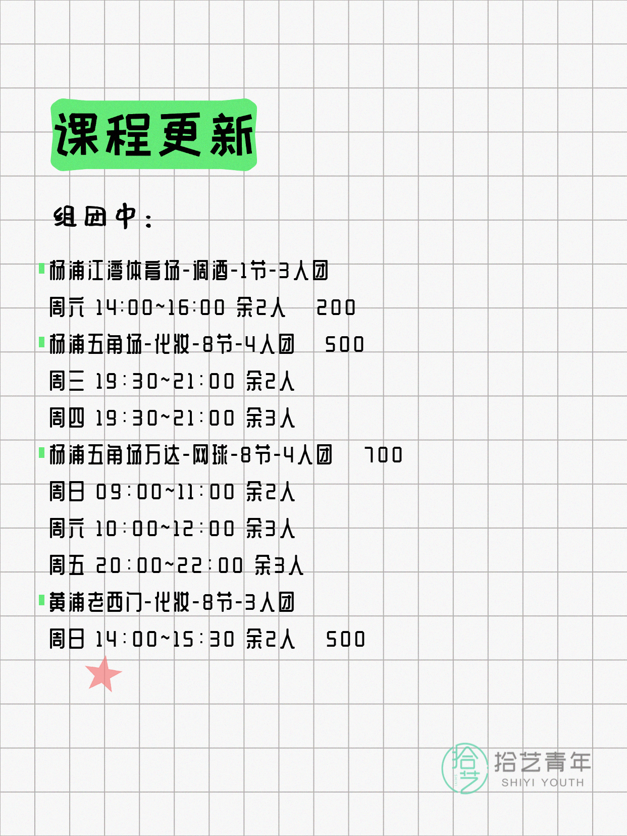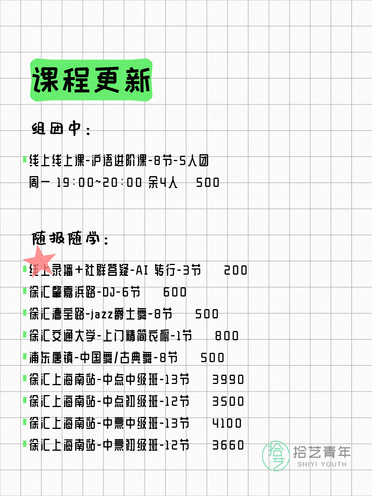 资讯>综合>正文4月24日上海夜校课程合集拾艺青年2026-04-241 / 17📊 本期课程概况• 总课程数:553门• 组团中课程:90门• 覆盖区域:15个区详见图片,欢迎报名咨询。💡 提示:以上课程信息来自拾艺青年小程序,课程可能随报名动态变化,具体以小程序实时信息为准。👉 微信小程序链接:#小程序://拾艺青年/WmfwH22mnQUxZwb
