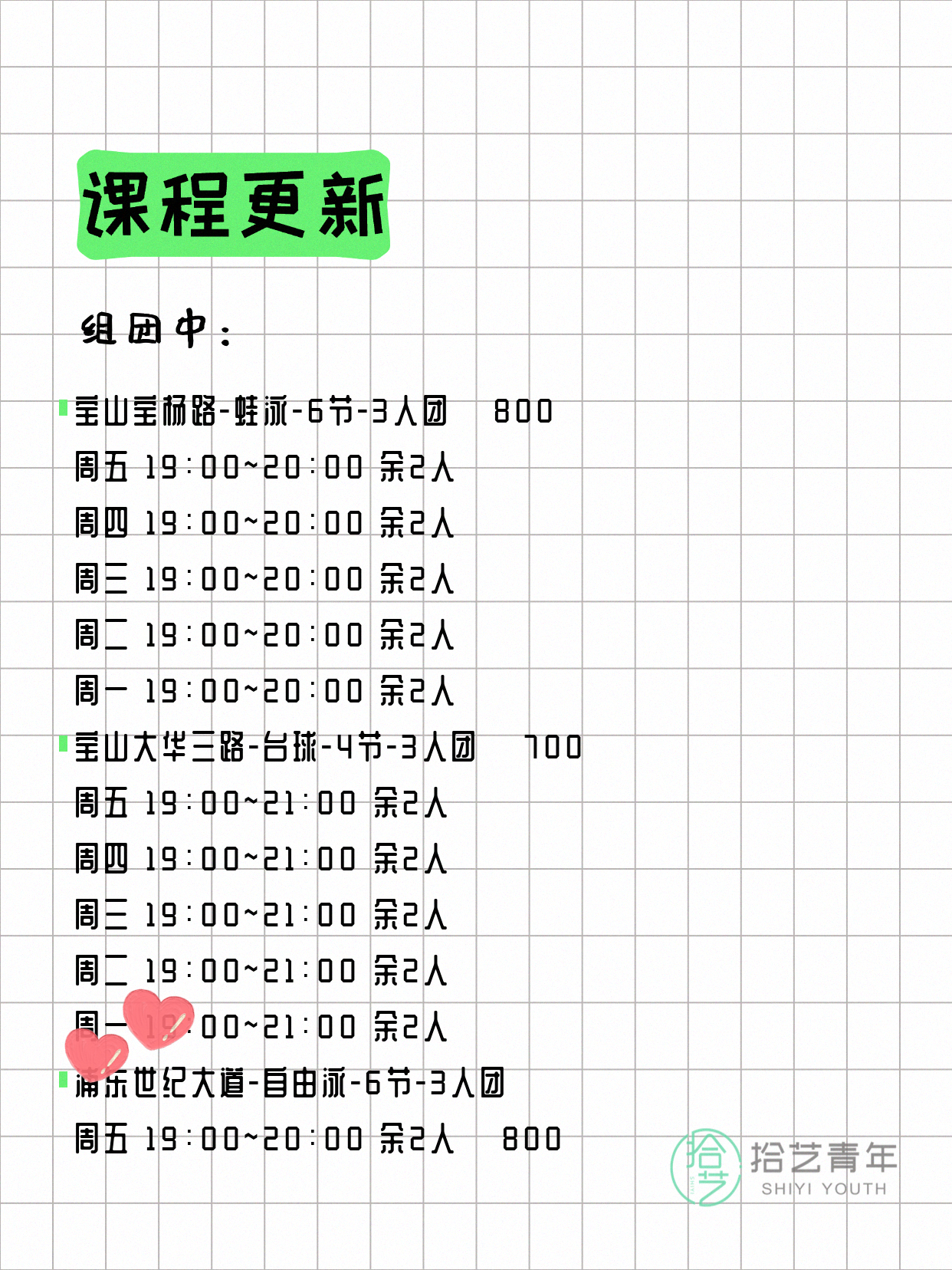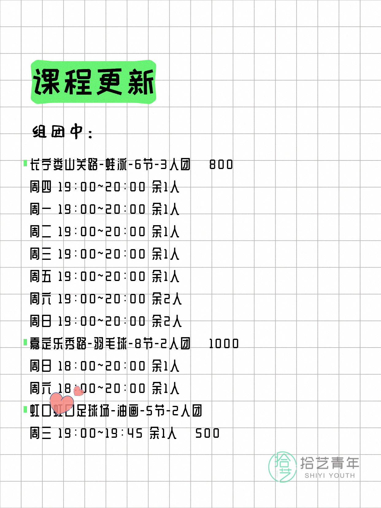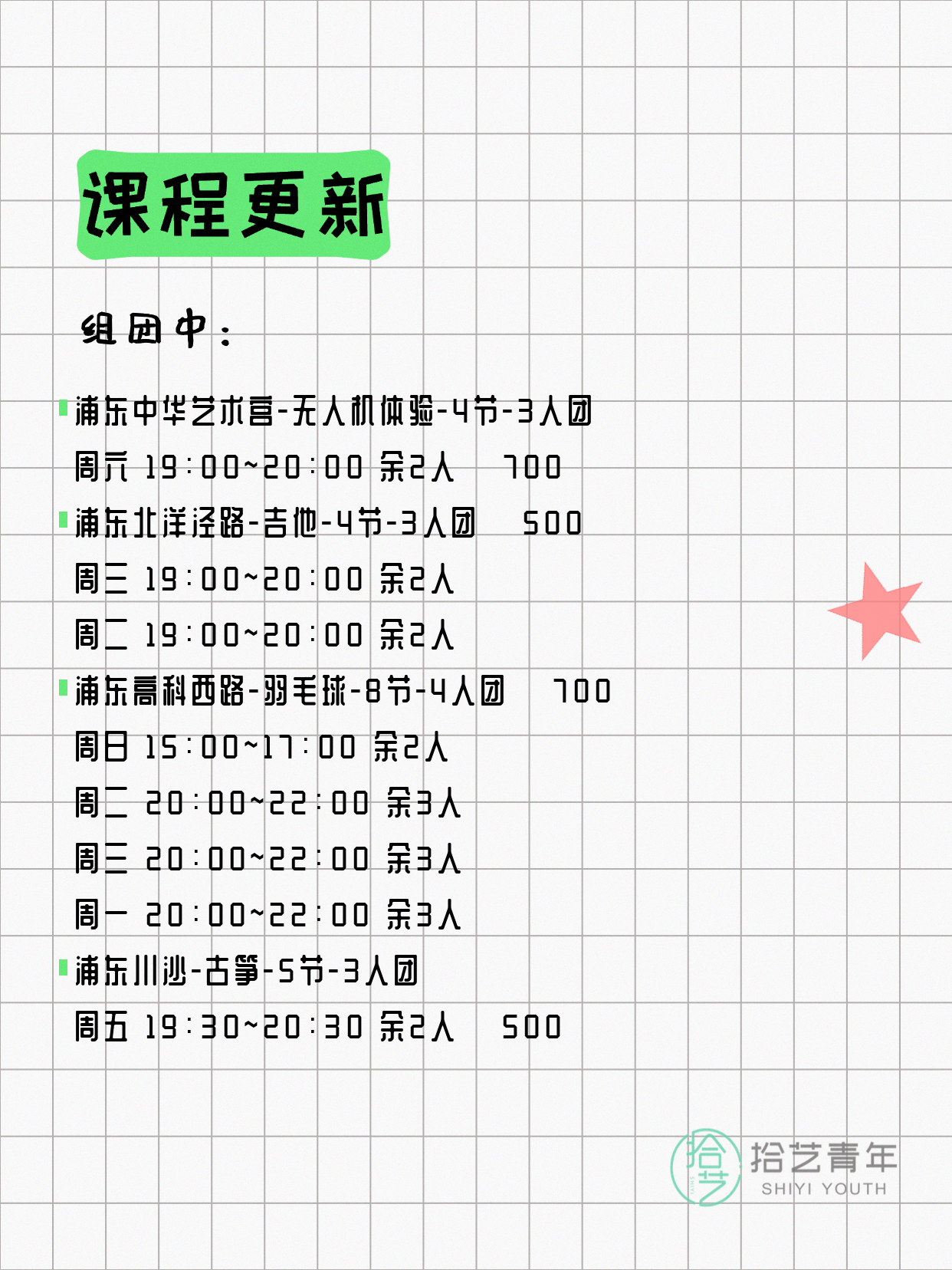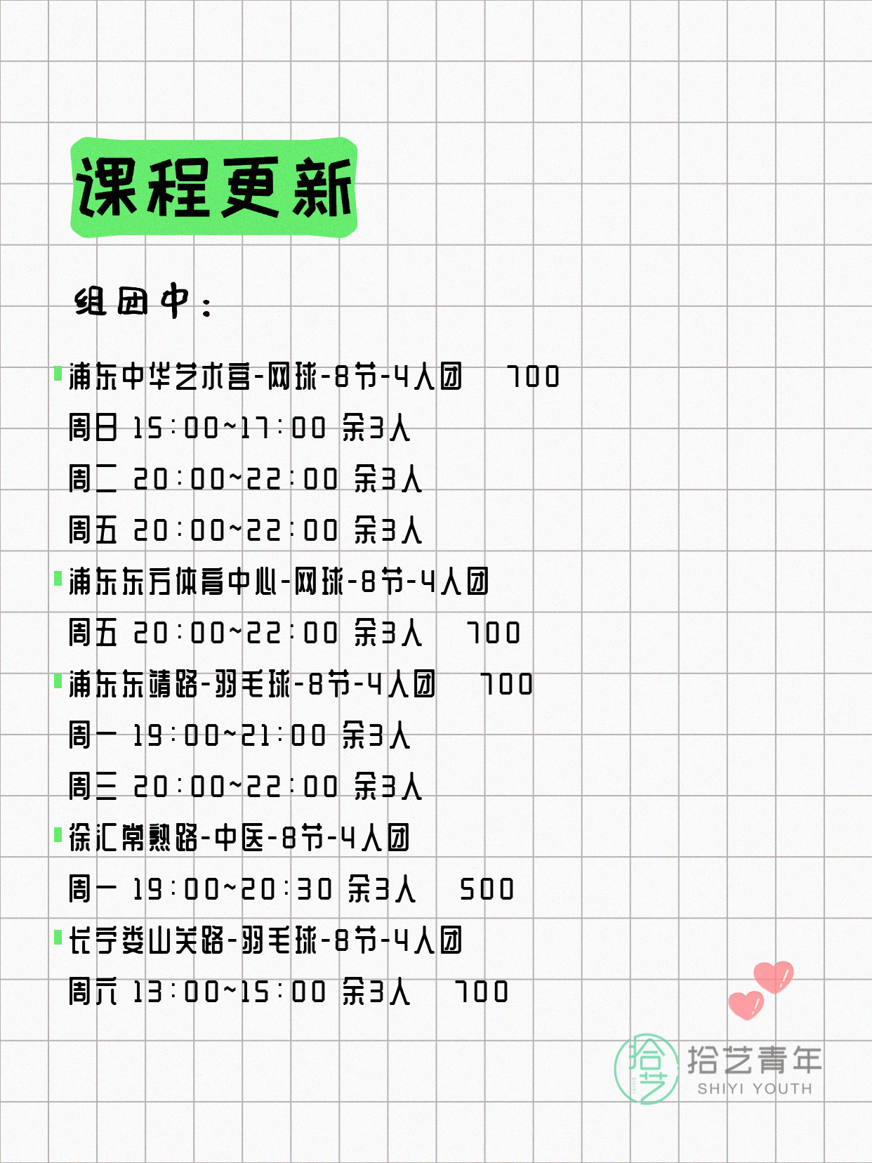 资讯>综合>正文4月24日上海夜校课程合集拾艺青年2026-04-241 / 17📊 本期课程概况• 总课程数:553门• 组团中课程:90门• 覆盖区域:15个区详见图片,欢迎报名咨询。💡 提示:以上课程信息来自拾艺青年小程序,课程可能随报名动态变化,具体以小程序实时信息为准。👉 微信小程序链接:#小程序://拾艺青年/WmfwH22mnQUxZwb