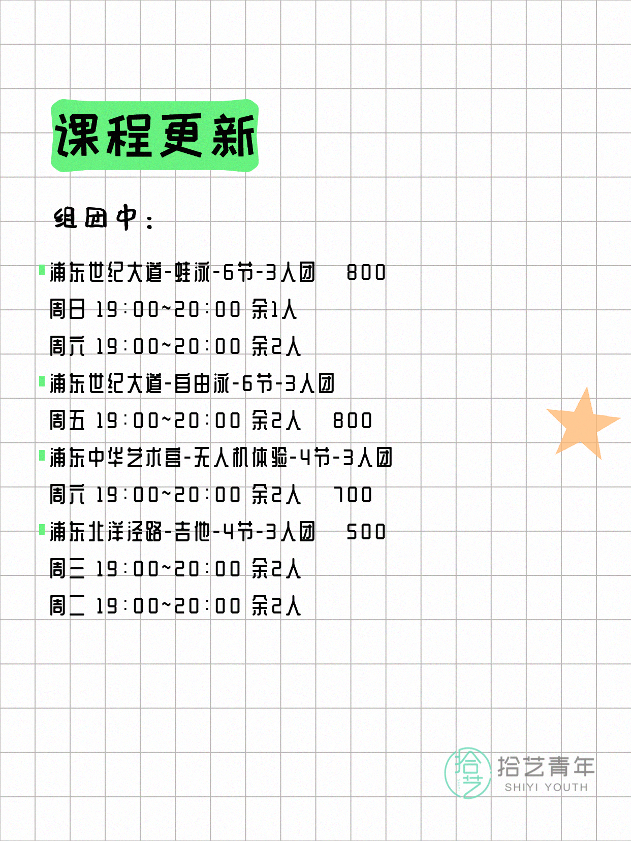 ⭐ 自由泳-浦东下沙-6节-3人团 💰800