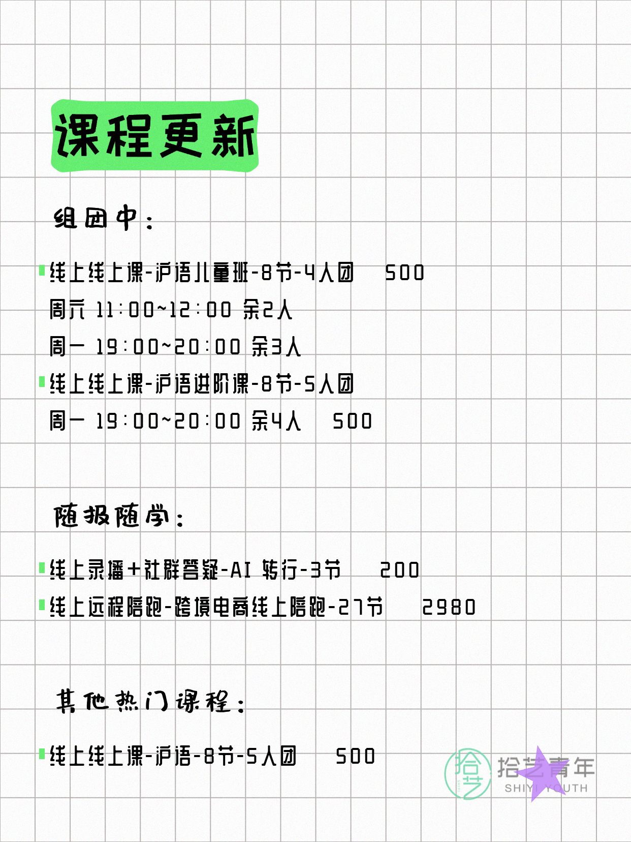 ⭐ 沪语-线上线上课-8节-5人团 💰500