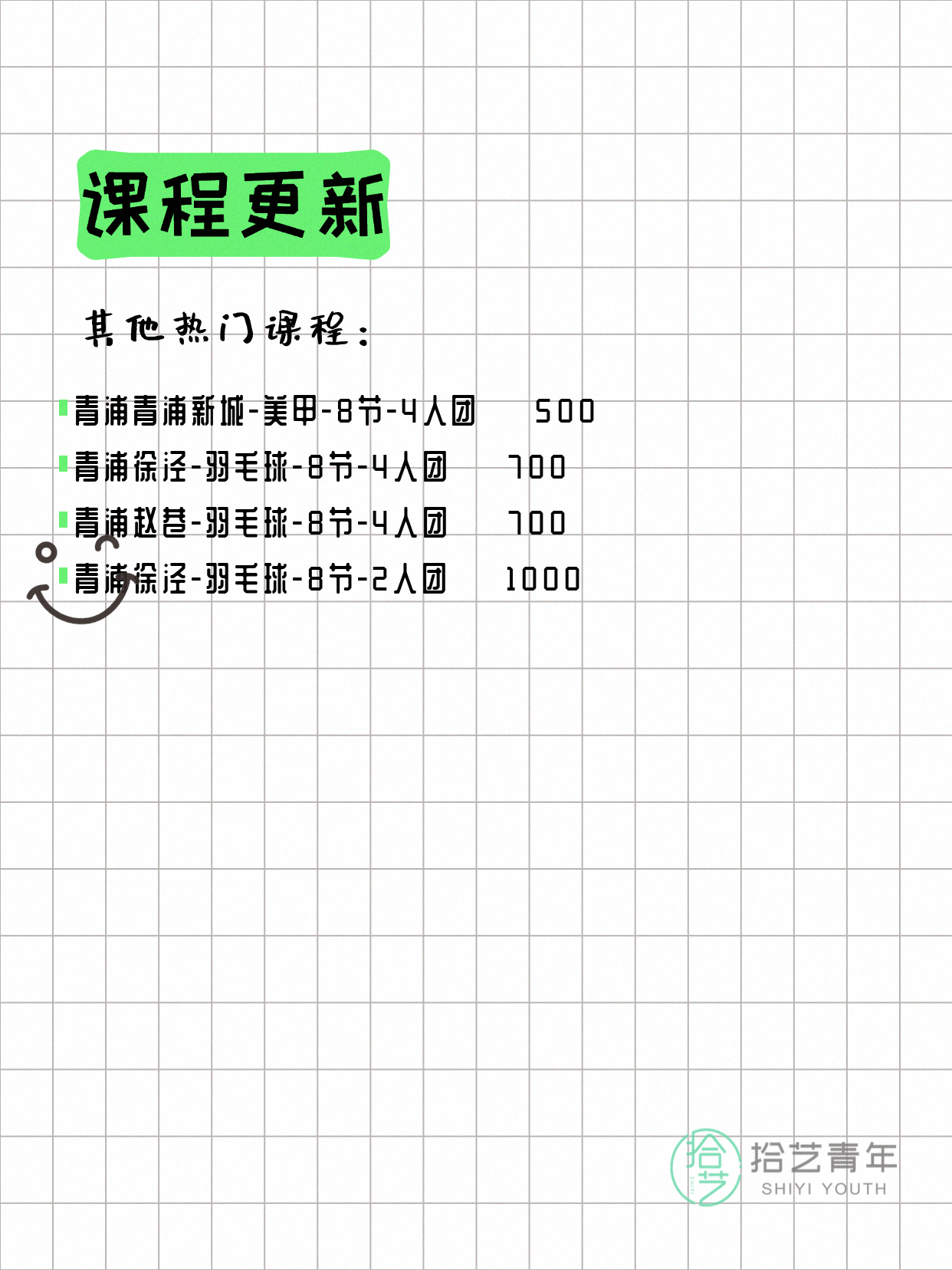 📌 羽毛球-青浦漕盈路-20节-一人即可 💰880