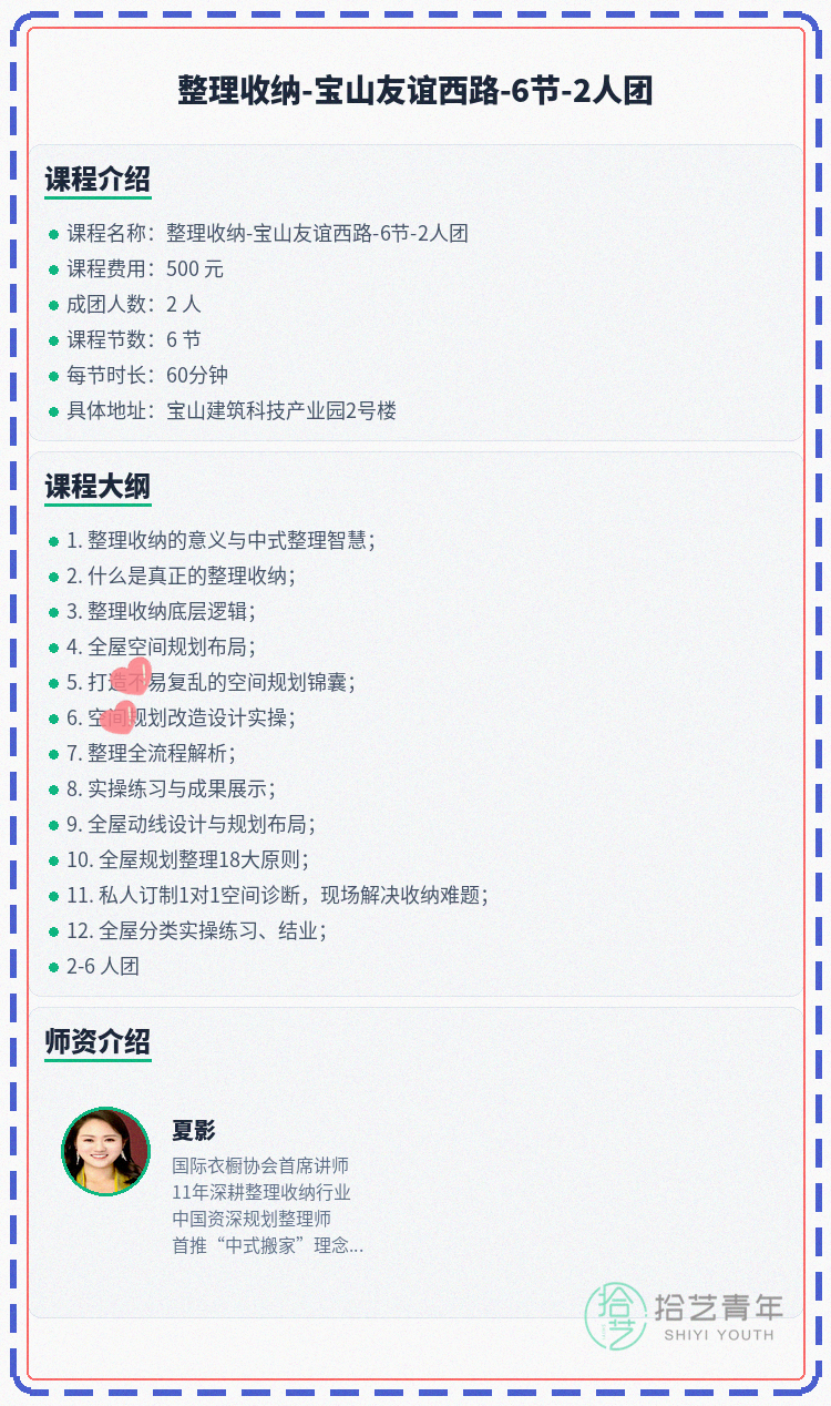 #上海夜校 #宝山夜校 #整理收纳课程 #夜校拼团 #上海线下课