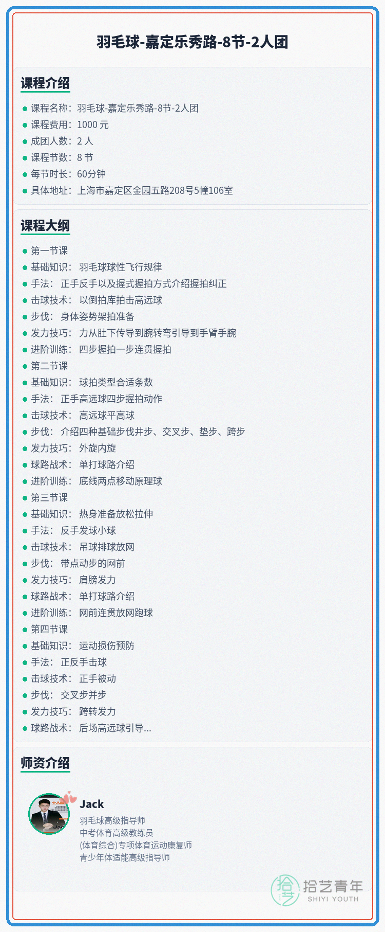 🏫 上课地点:上海市嘉定区金园五路208号5幢106室