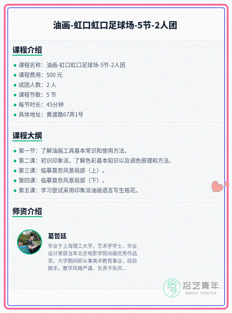 #上海夜校 #虹口夜校 #油画课程 #夜校拼团 #上海线下课