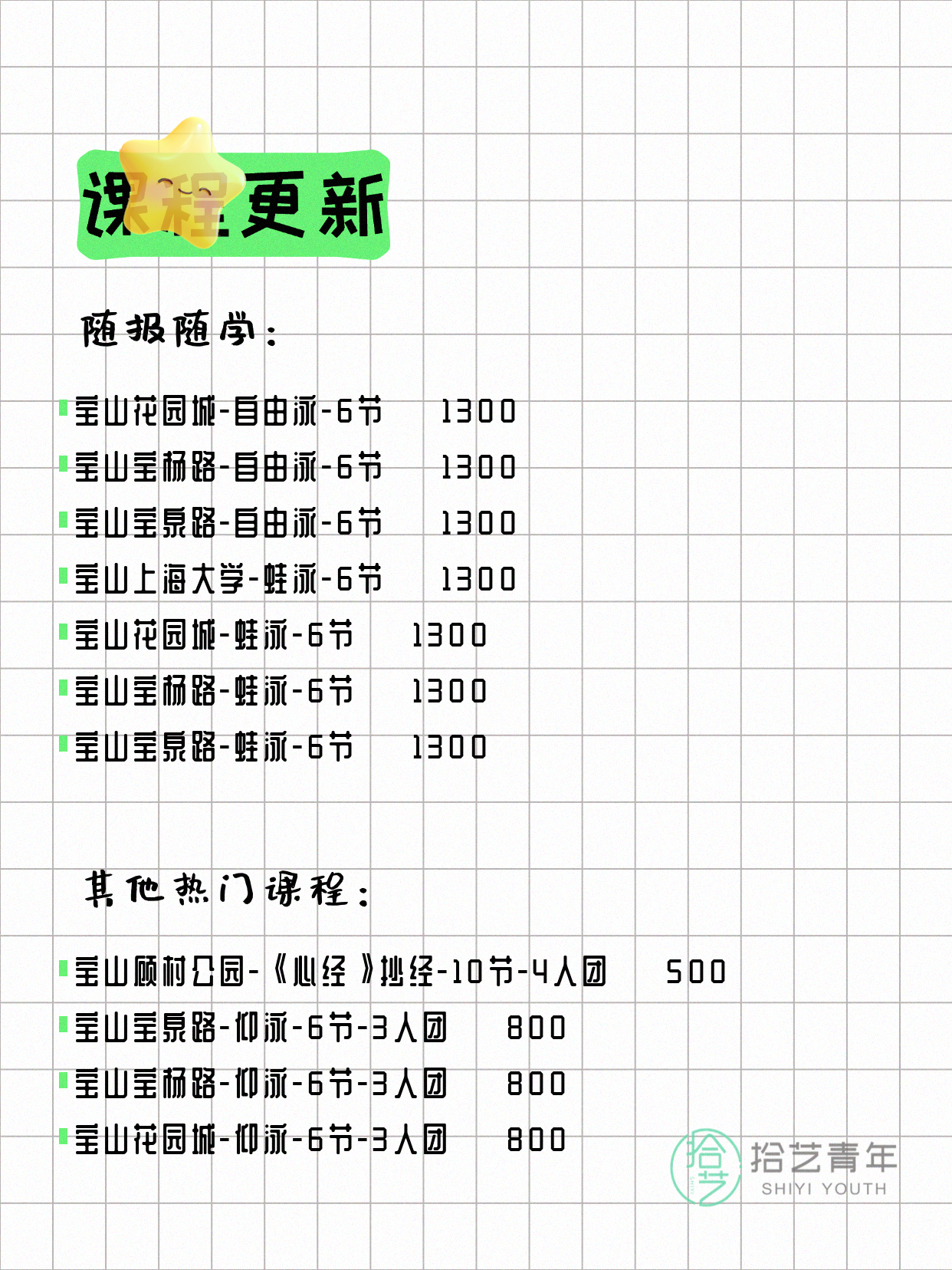 ⭐ 蛙泳-宝山花园城-6节-3人团 💰800