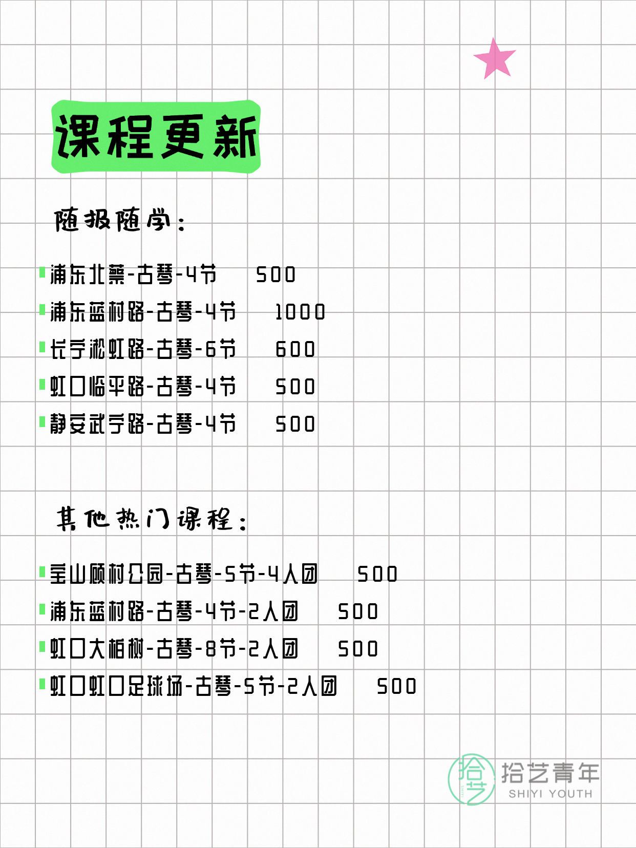 ⭐ 古琴-浦东蓝村路-4节-2人团 💰500