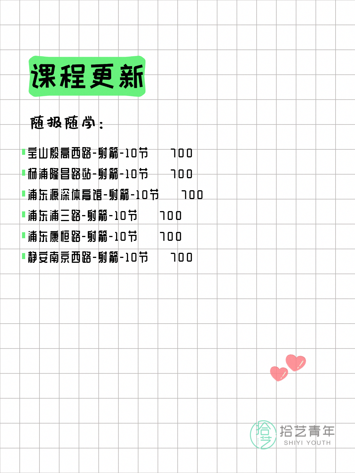 📌 射箭-宝山殷高西路-10节-一人即可 💰700