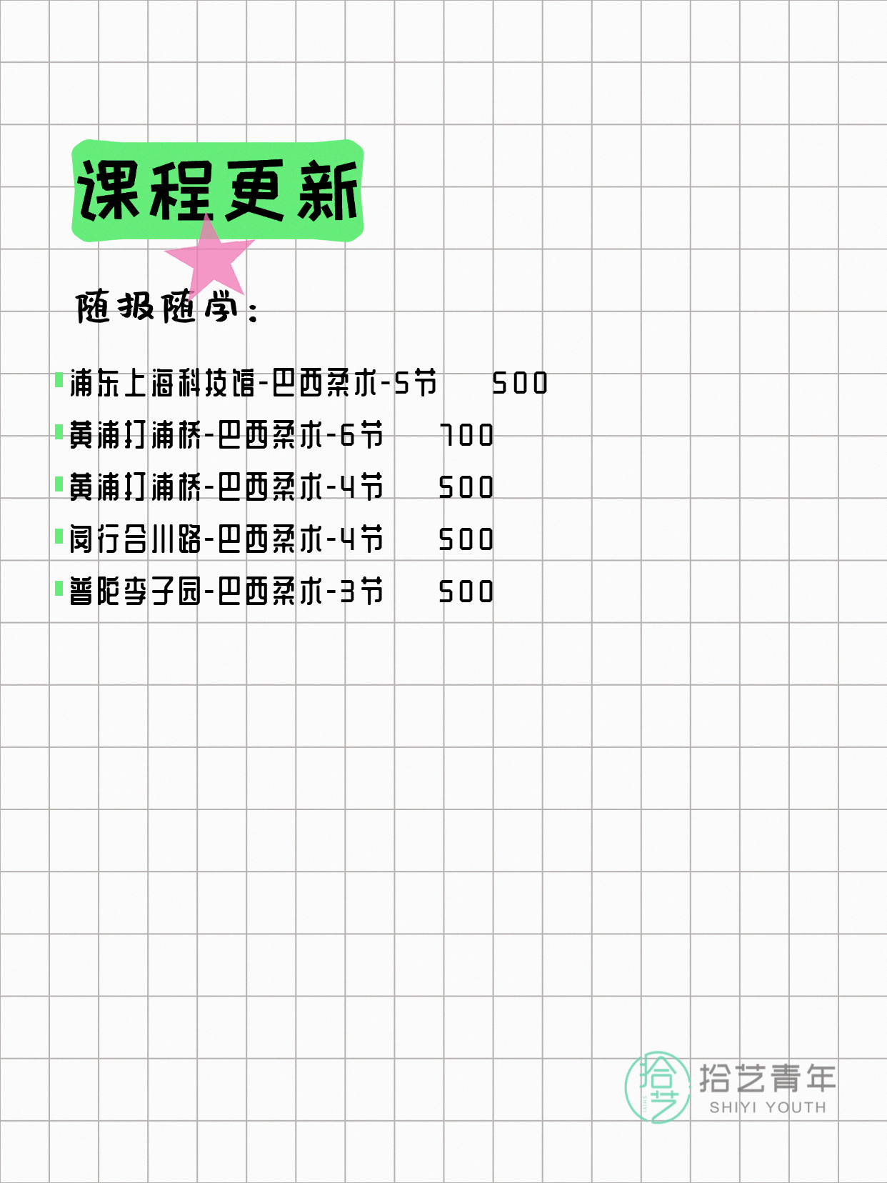 📌 巴西柔术-黄浦打浦桥-6节-一人即可 💰700