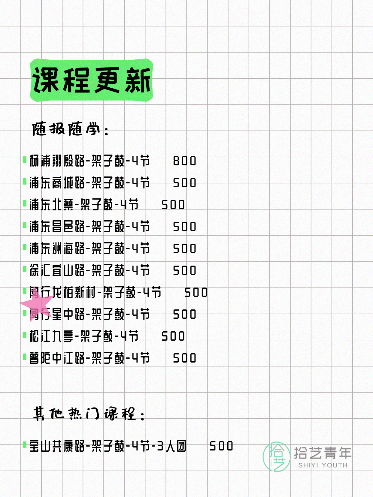 📌 架子鼓-浦东商城路-4节-一人即可 💰500
