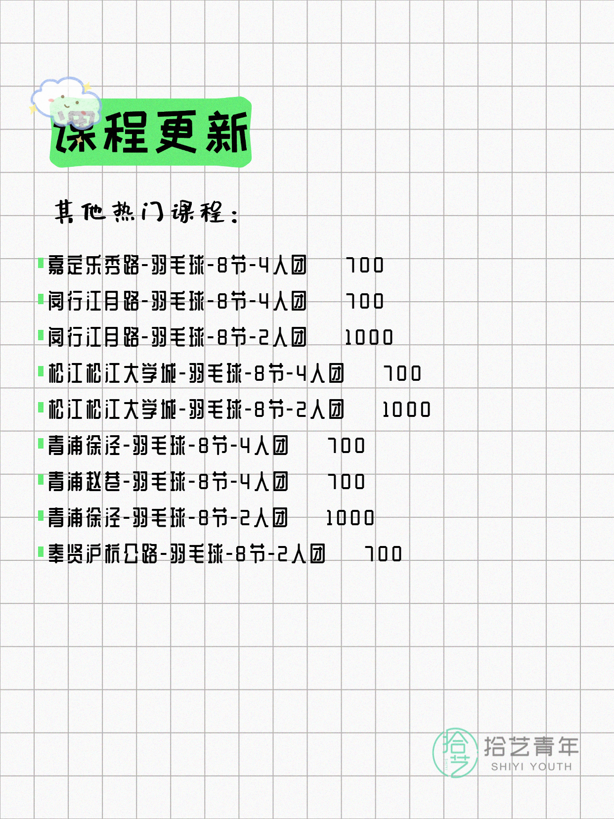 📌 羽毛球-青浦漕盈路-20节-一人即可 💰880
