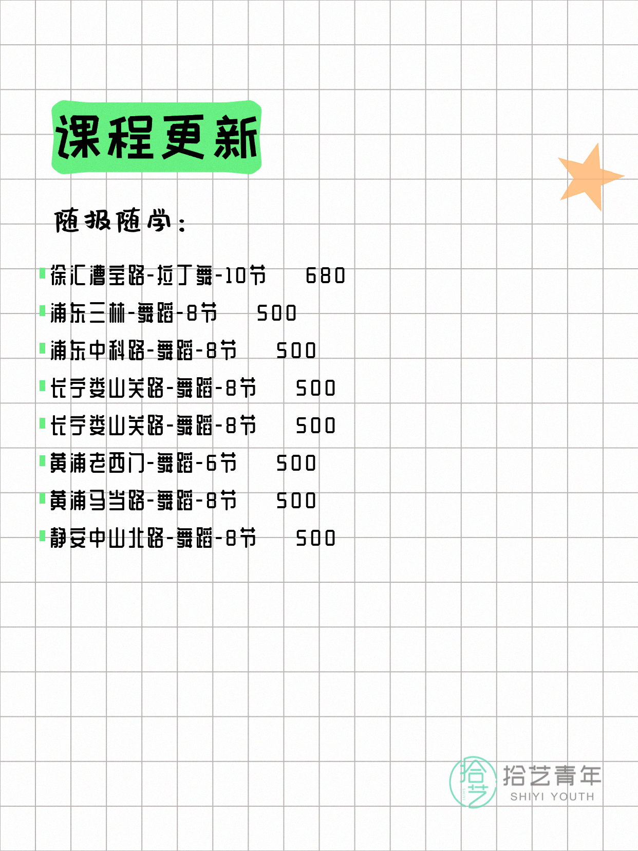 💡 提示:以上课程信息来自拾艺青年小程序,课程可能随报名动态变化,具体以小程序实时信息为准。