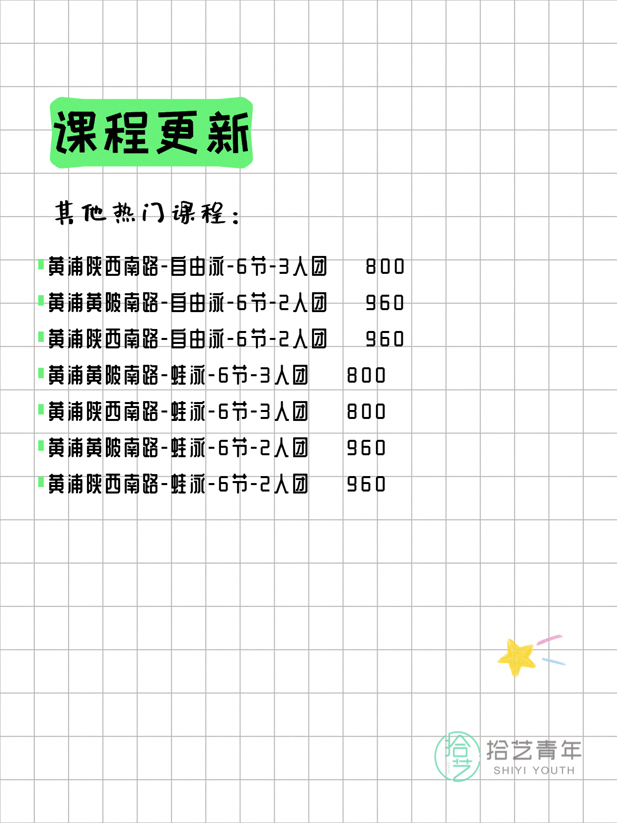 ⭐ 仰泳-黄浦黄陂南路-6节-3人团 💰800
