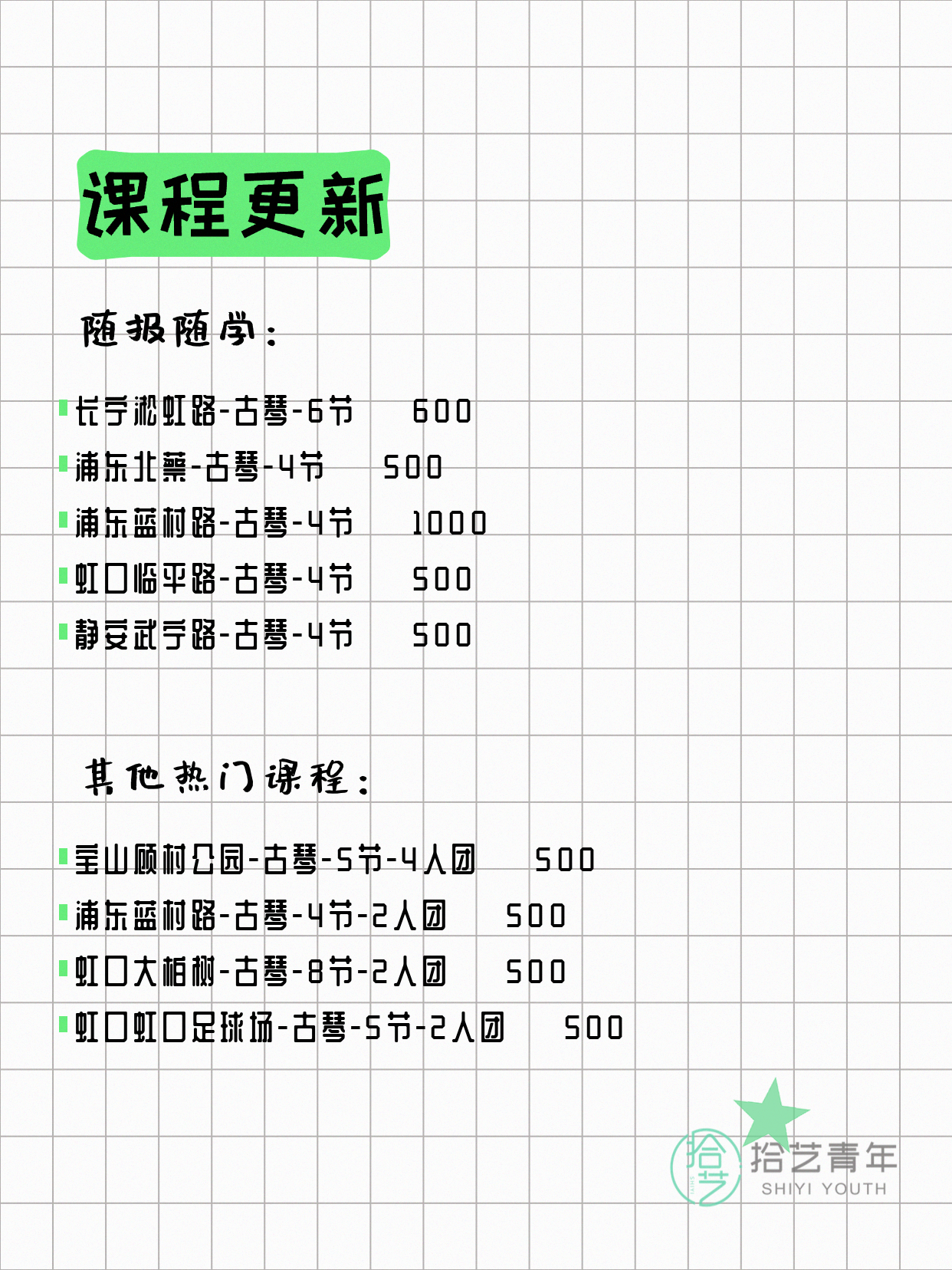 📌 古琴-浦东蓝村路-4节-私教 💰1000