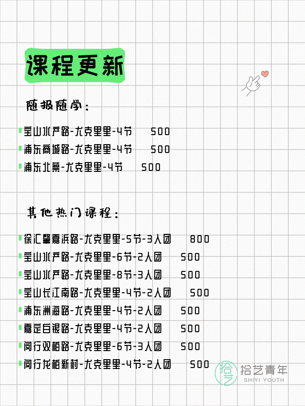 📌 尤克里里-宝山水产路-4节-一人即可 💰500