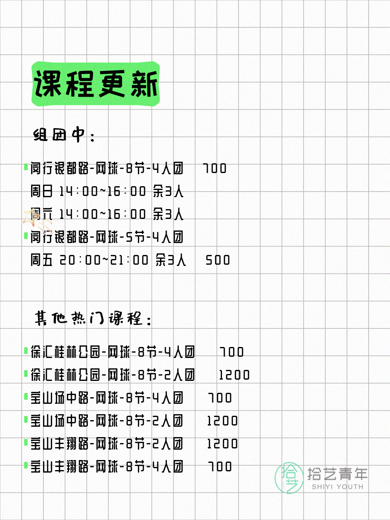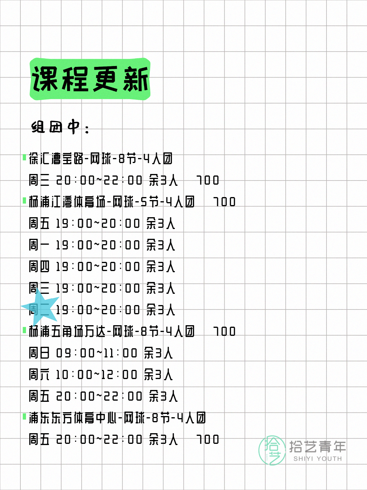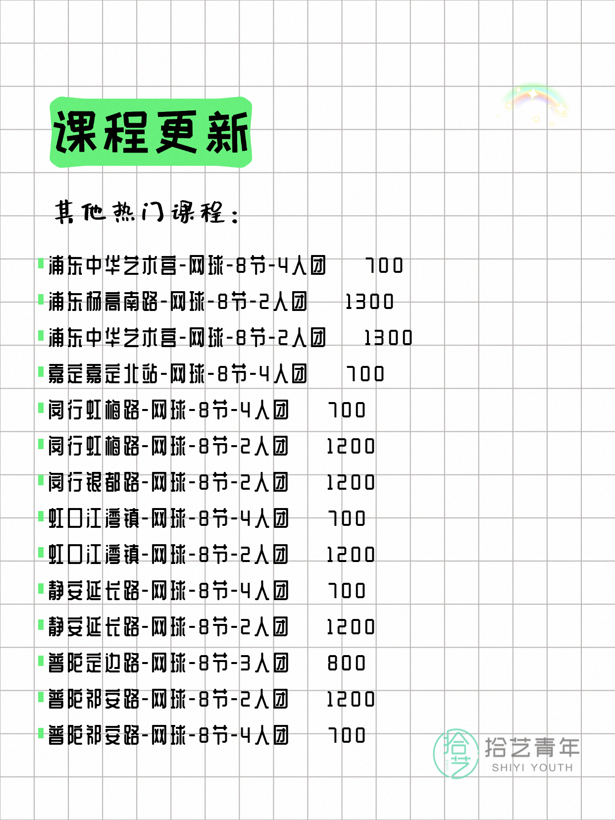 ⭐ 网球-静安延长路-8节-2人团 💰1200