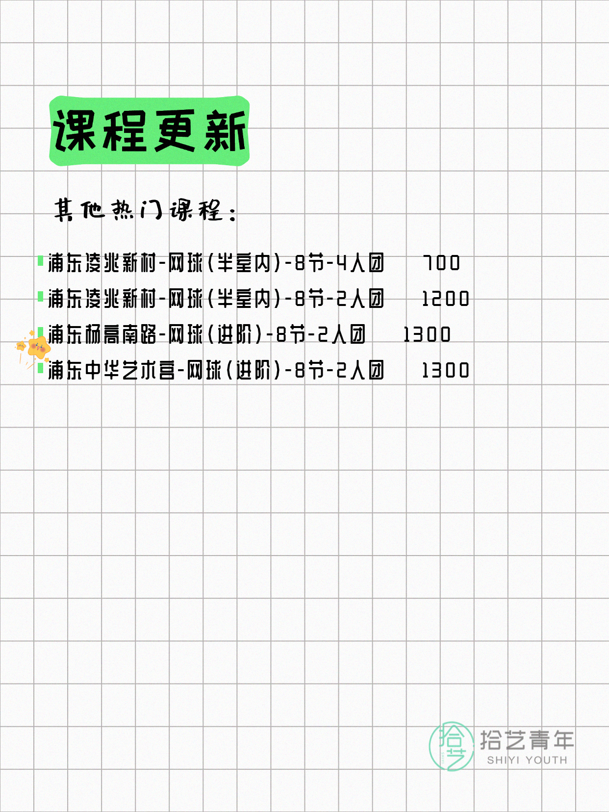 ⭐ 网球-浦东杨高南路-8节-2人团 💰1300