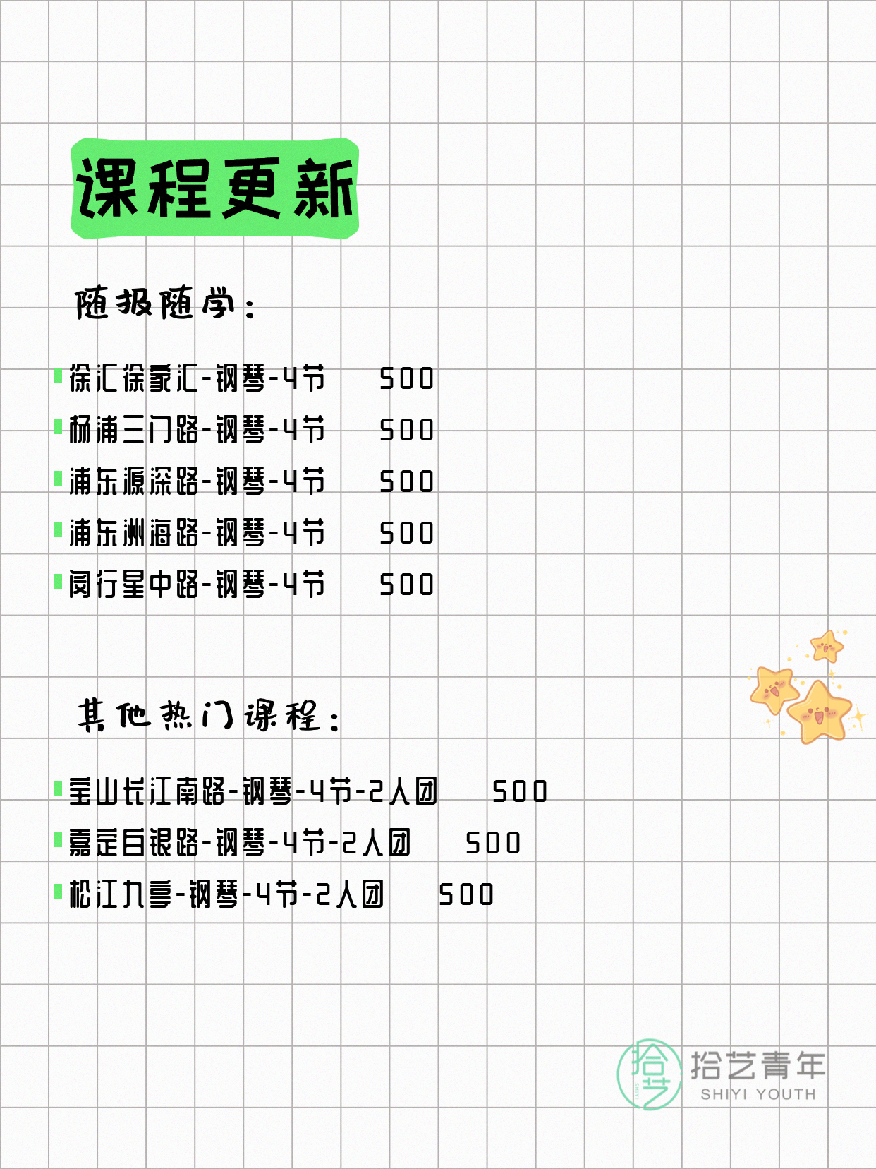 ⭐ 钢琴-宝山长江南路-4节-2人团 💰500