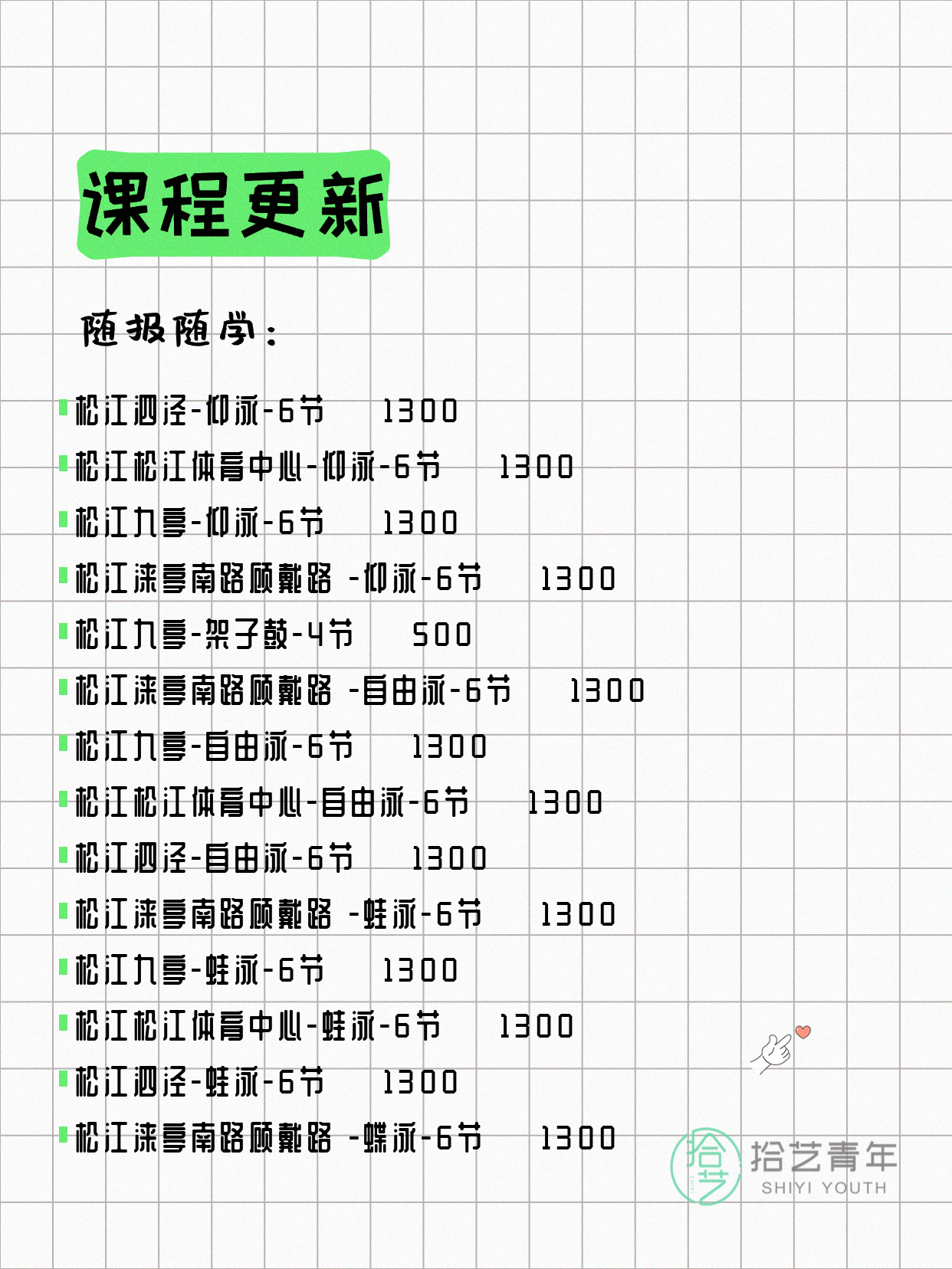 📌 仰泳-松江泗泾-6节-私教 💰1300