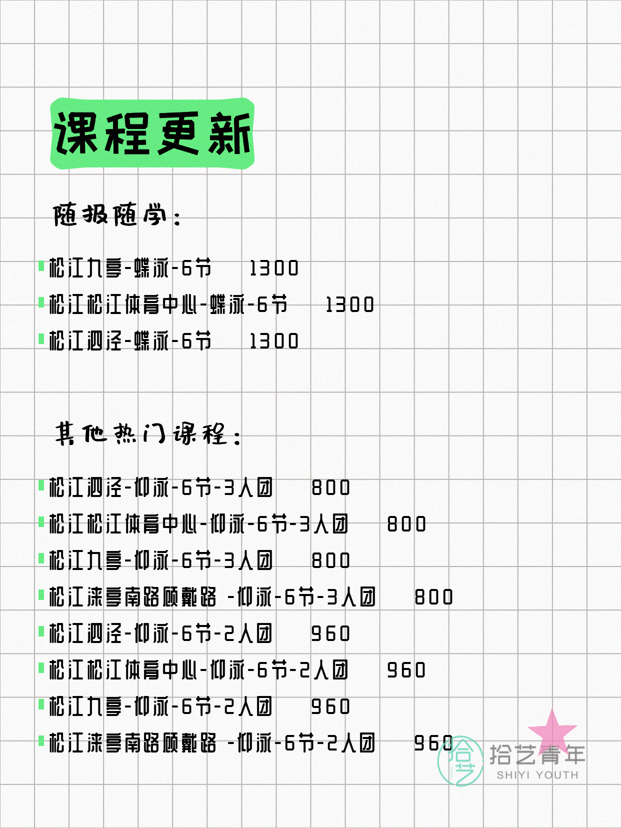 ⭐ 仰泳-松江泗泾-6节-3人团 💰800