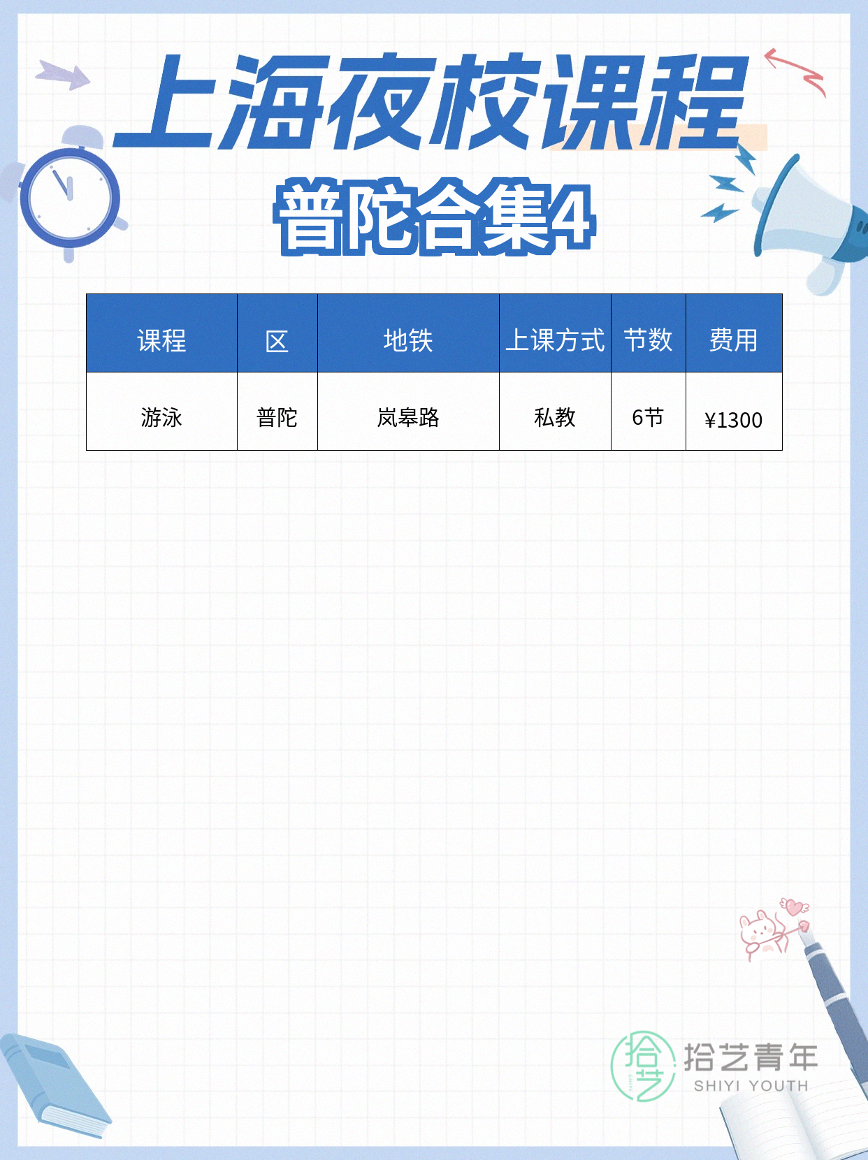 资讯>综合>正文普陀同事分享的夜校拾艺青年2026-04-291 / 5在这上班的快看!同事刚发的普陀夜校课表🎾网球 💄化妆 📌软笔书法住得近真的太幸运啦相关标签##上海夜校##普陀##打工人日常##下班后的生活##兴趣培养