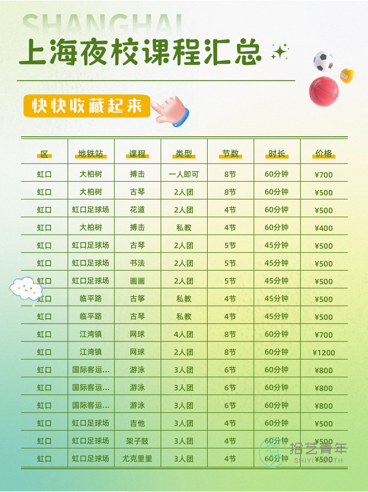 资讯>综合>正文虹口刚更课表啦拾艺青年2026-04-291 / 3刚下班路过撞见!🎾网球 📌中式插花 🎵古筝课表刚新鲜出炉~直接冲就行相关标签##上海夜校##虹口##中式插花##网球##古筝##下班后的生活