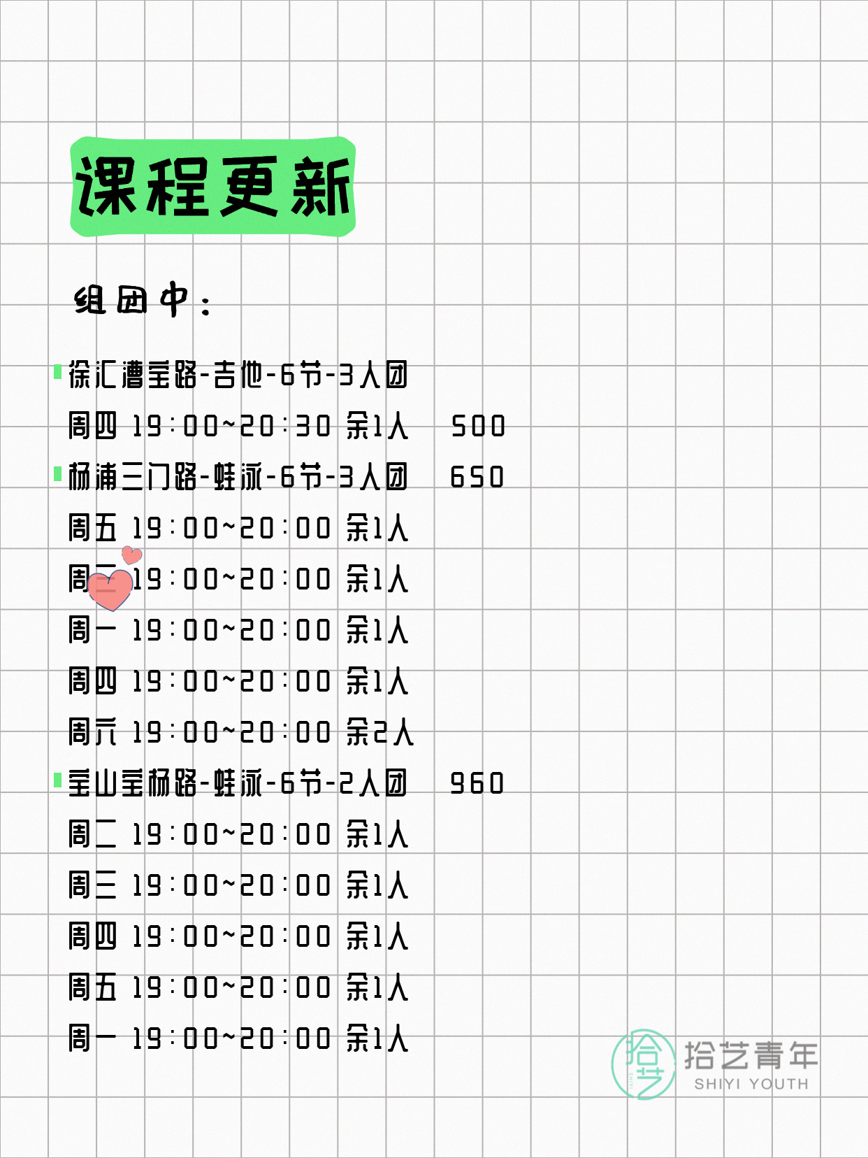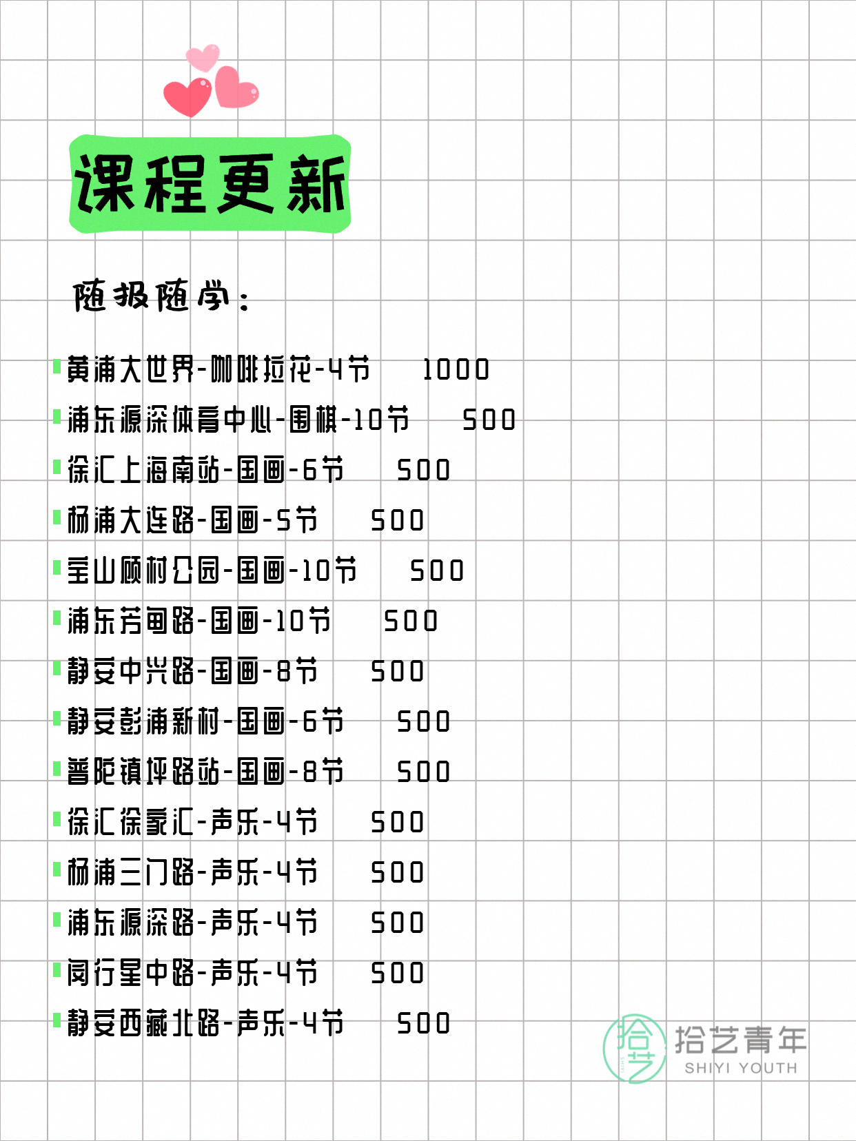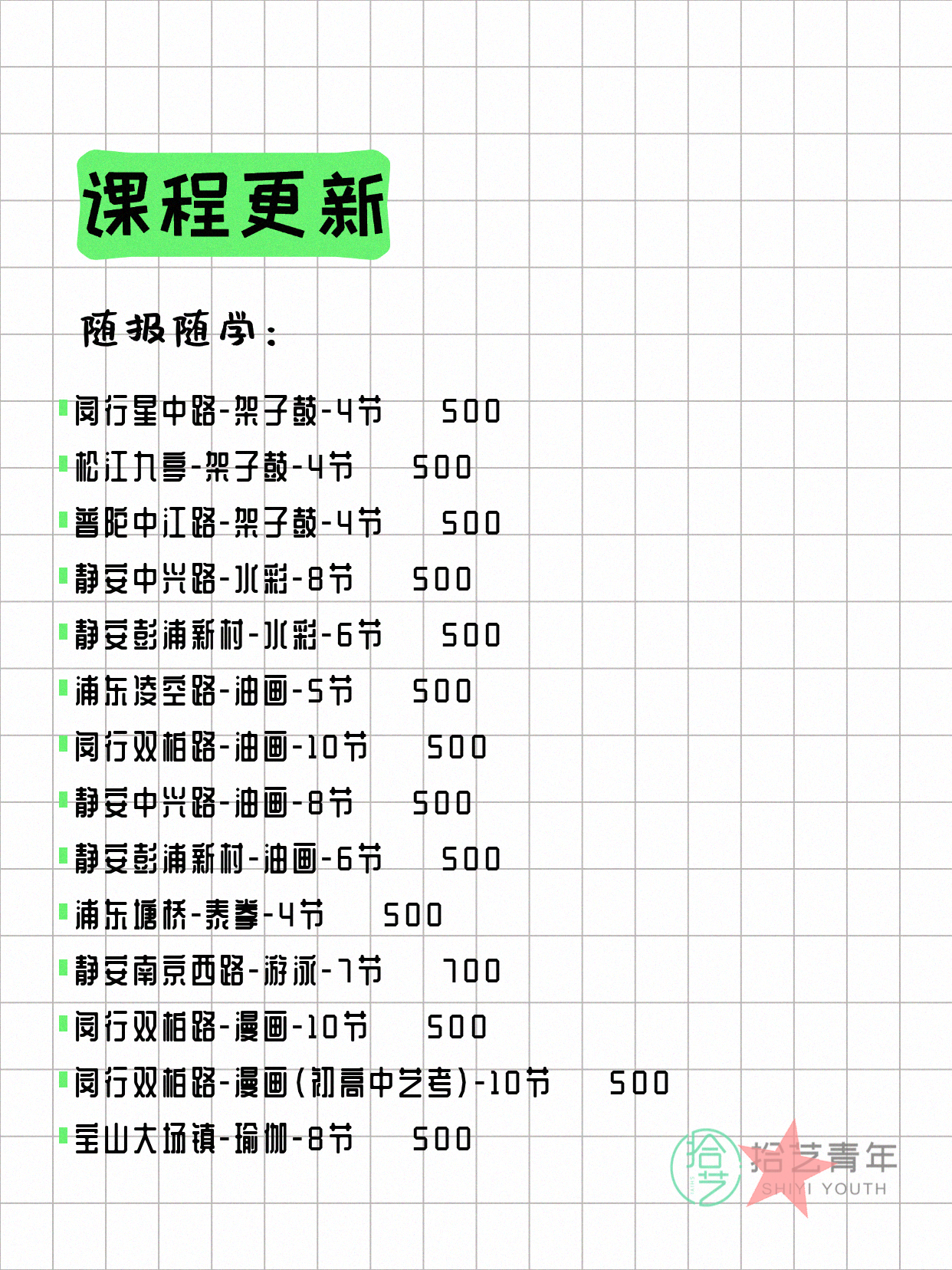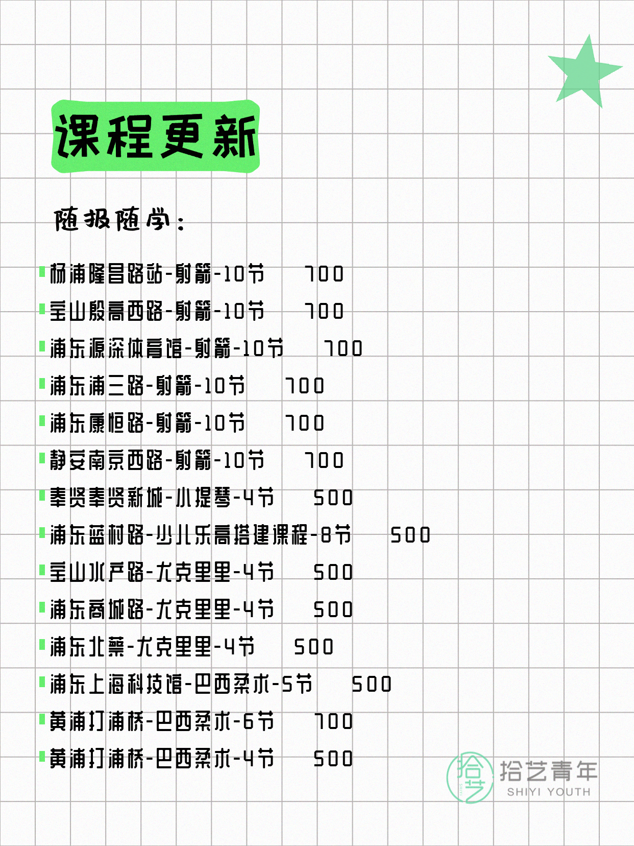 资讯>综合>正文4月29日上海夜校课程合集拾艺青年2026-04-291 / 17📊 本期课程概况• 总课程数:653门• 组团中课程:71门• 覆盖区域:15个区详见图片,欢迎报名咨询。💡 提示:以上课程信息来自拾艺青年小程序,课程可能随报名动态变化,具体以小程序实时信息为准。👉 微信小程序链接:#小程序://拾艺青年/WmfwH22mnQUxZwb