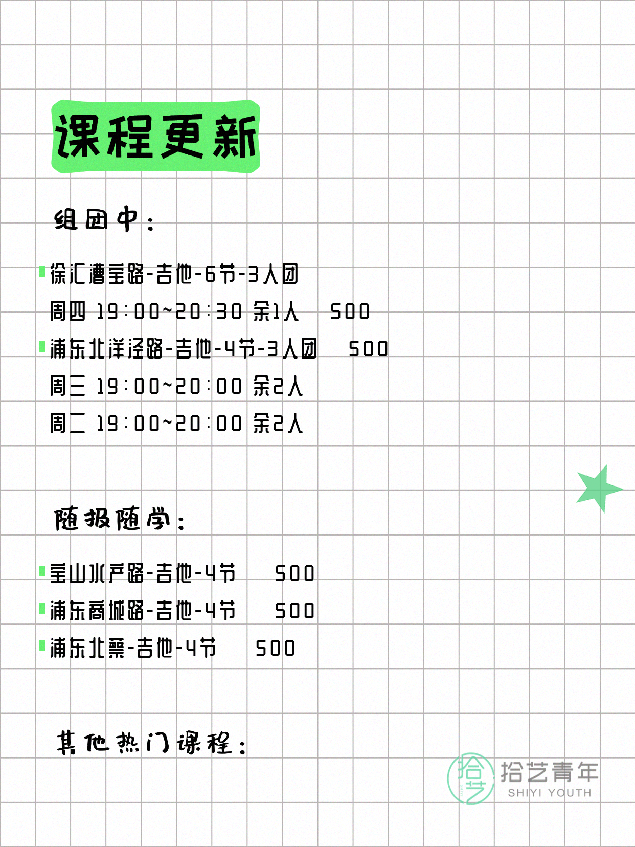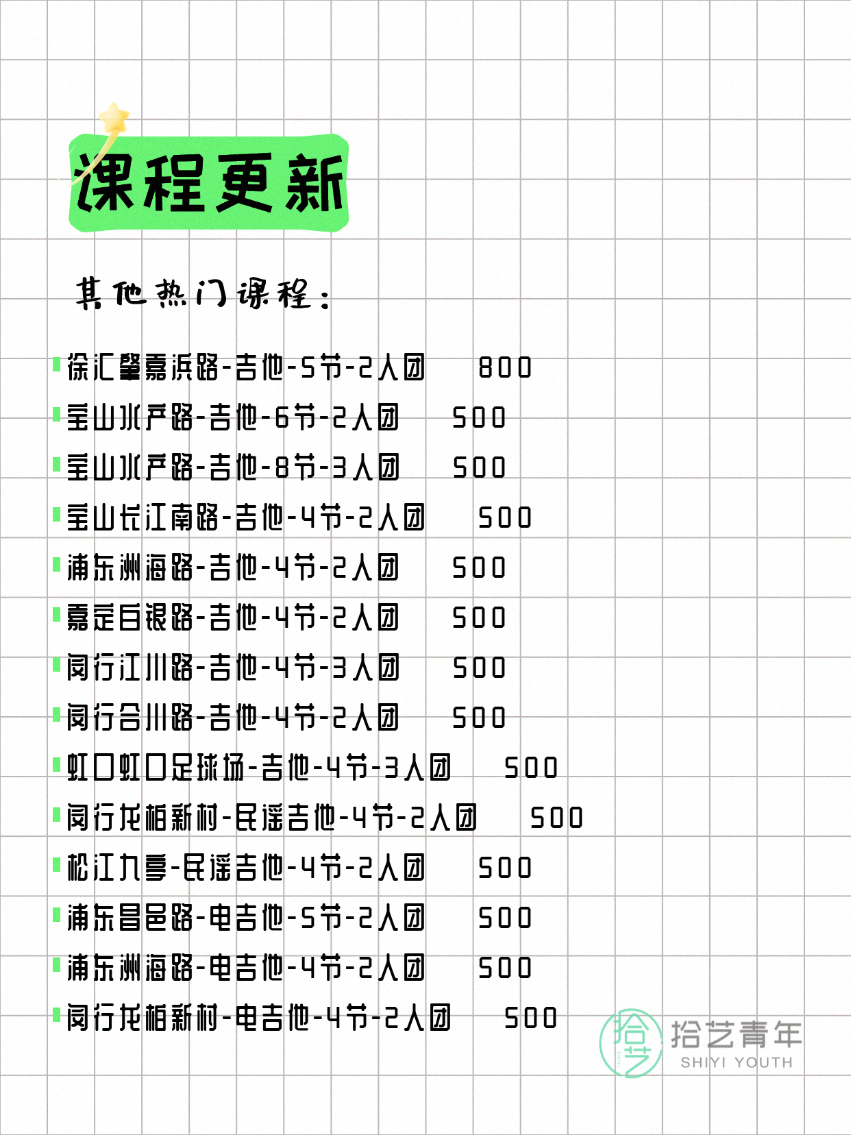 ⭐ 吉他-宝山水产路-8节-3人团 💰500