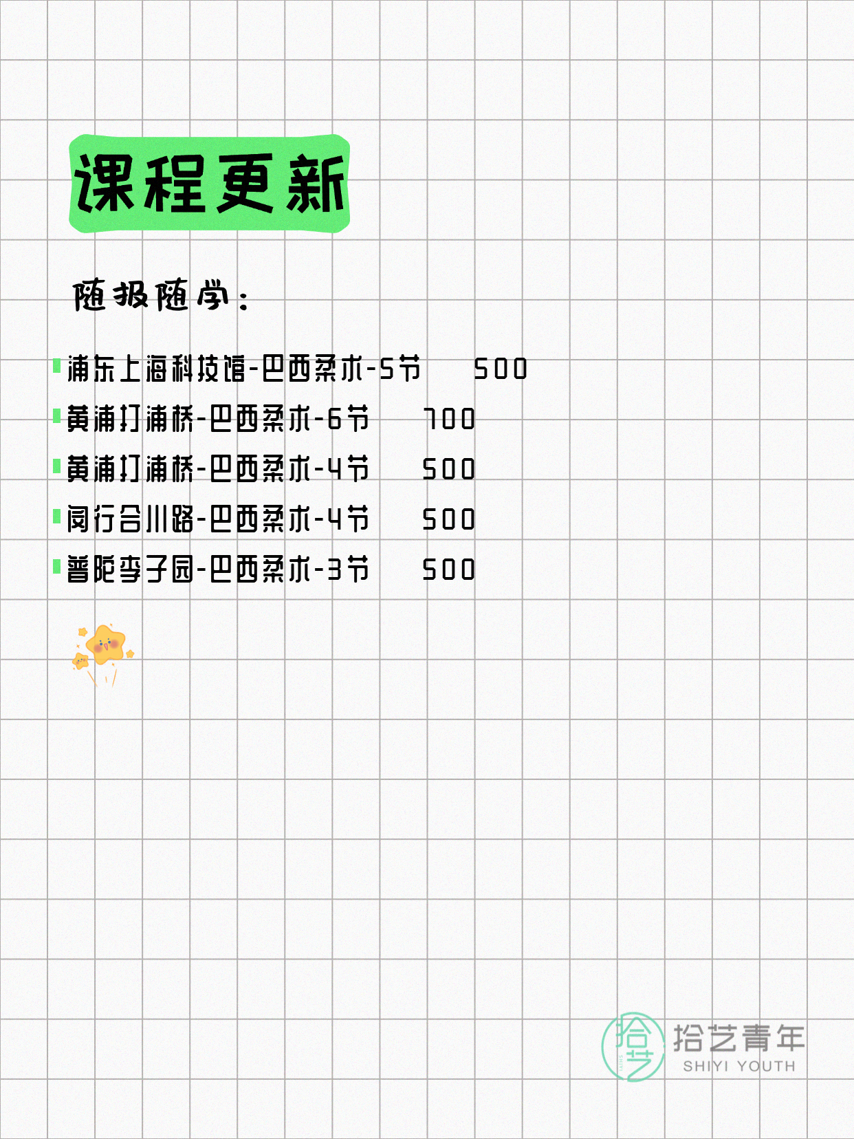 📌 巴西柔术-黄浦打浦桥-6节-一人即可 💰700