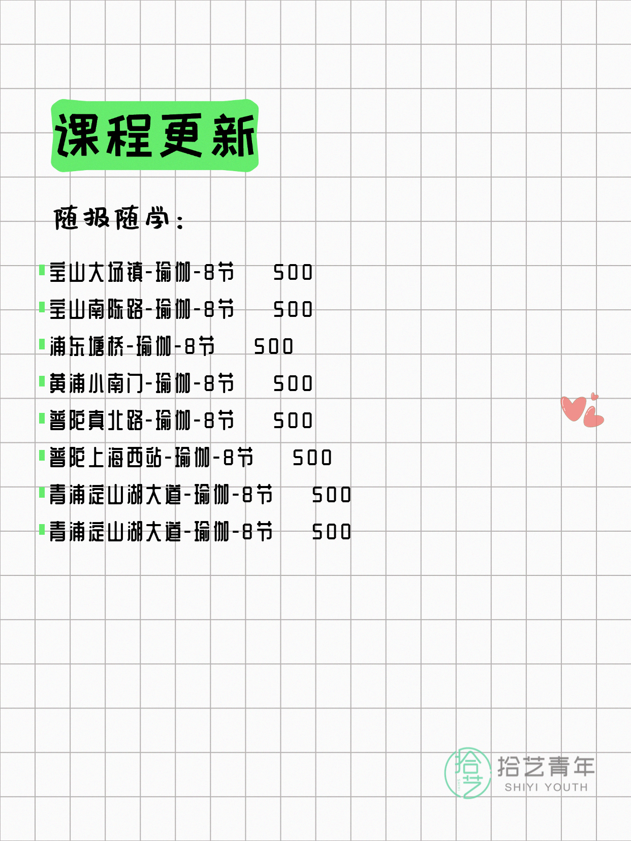 📌 瑜伽-浦东塘桥-8节-一人即可 💰500